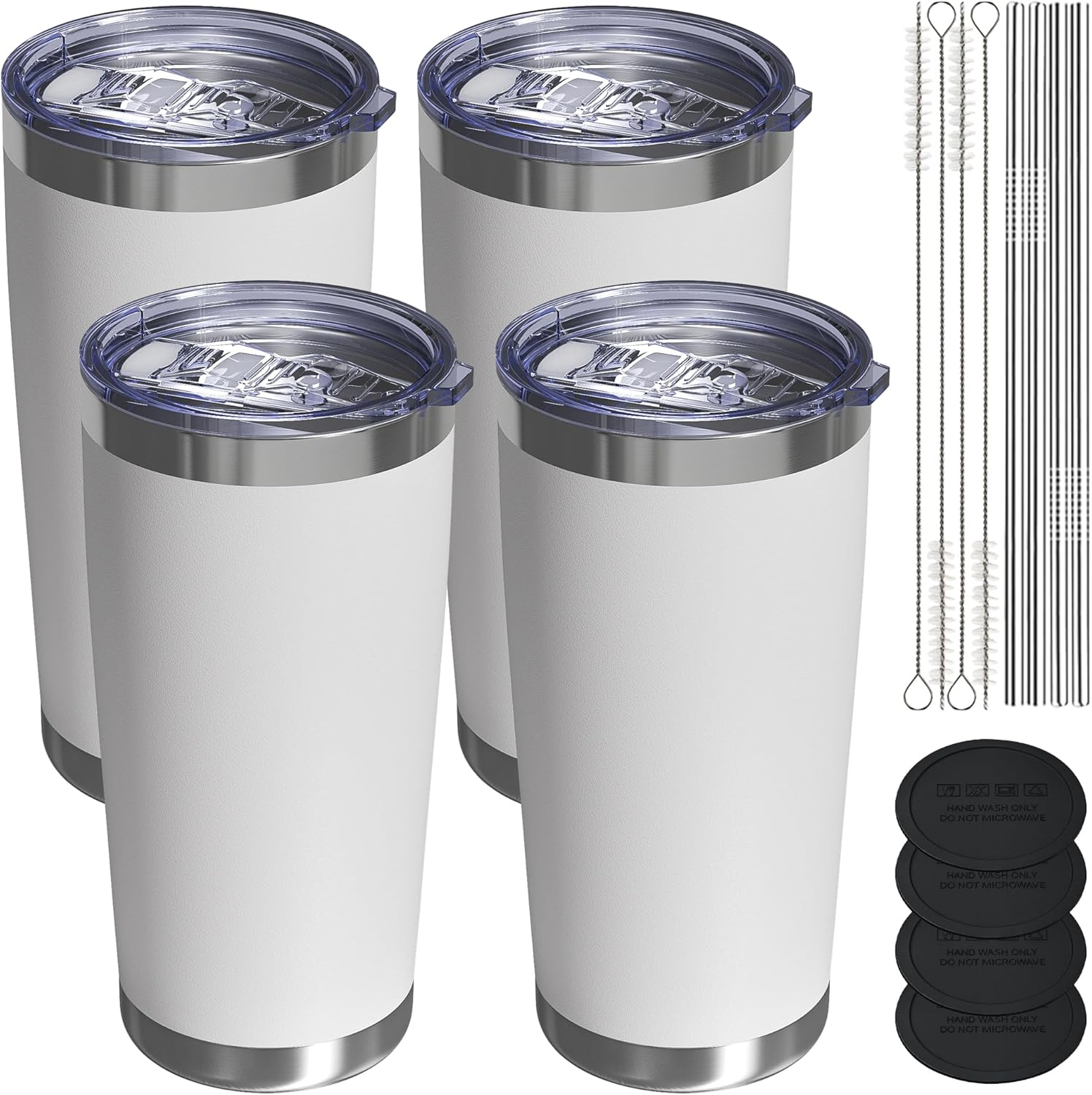 Travel Coffee Tumbler 20oz, 4 Pack Leakproof Travel Coffee Mug with Lid and Straw, Stainless Steel Double Wall Vacuum Insulated Tumbler for Hot/Iced Drinks (Textured Matte, White)