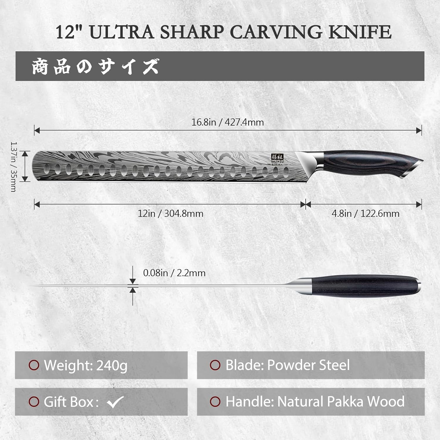 - [Powder Steel Japanese Carving Knife] SHAN ZU brisket knife is Engineered with high-carbon Japanese powder steel hardened to 63+ HRC - 30% harder than standard knives. Features advanced vacuum heat treatment for maximum edge retention, making this slicing knife 3X more durable than ordinary stainless steel blades