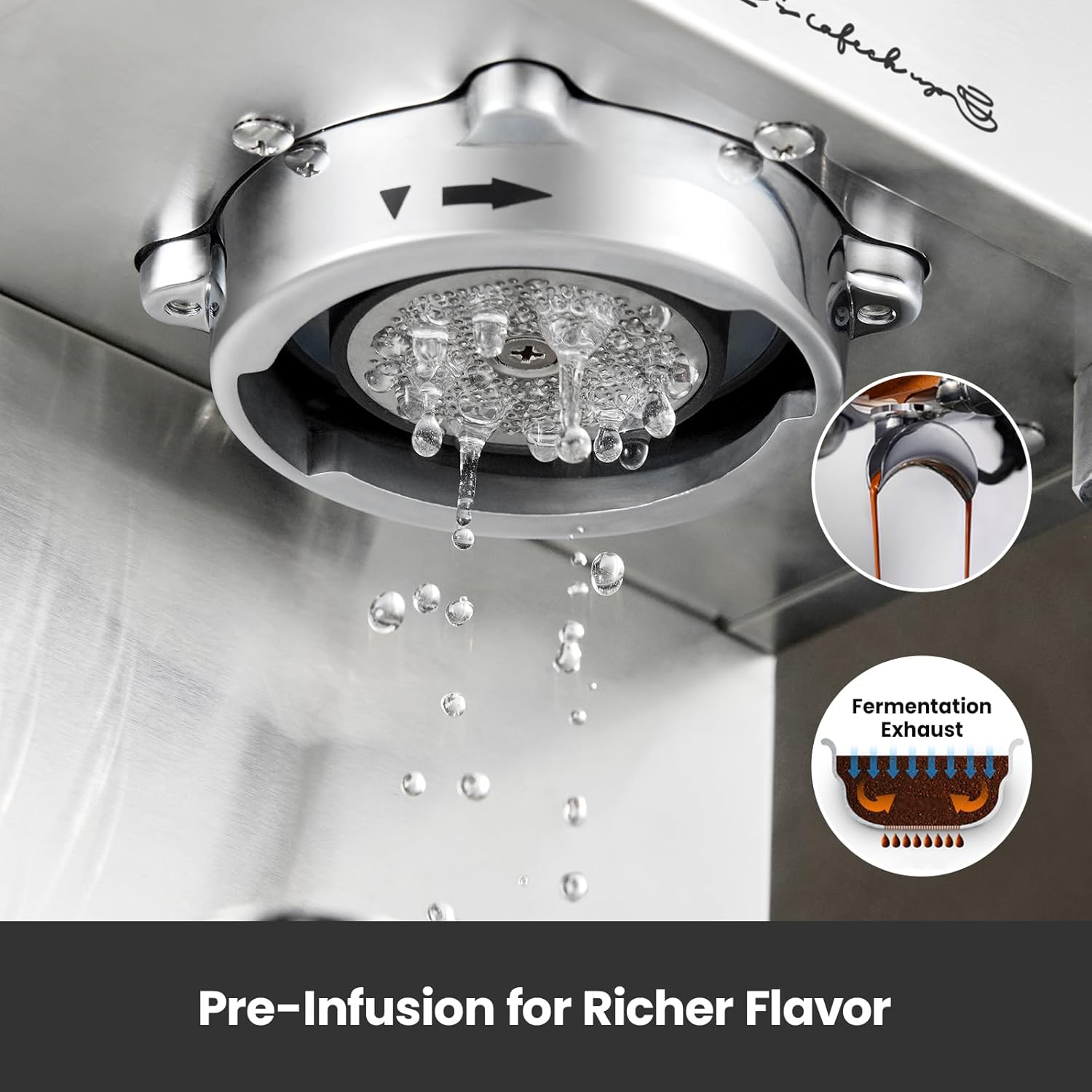 - Advanced Extraction System: The 1500W Espresso Machine enhances your coffee extraction through a professional-grade Italian pump and a robust extraction process. Each espresso shot is crafted to perfection, offering a rich aroma and intense flavor. This coffee machine is an excellent and thoughtful gift for family and friends