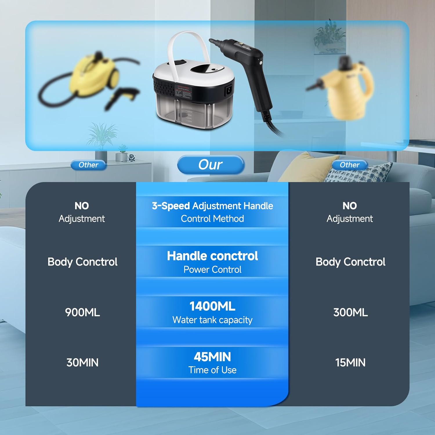 - Handheld Steam Cleaning Handle: This multipurpose home steamer features an upgraded handle remote control with 3 adjustable steam levels and 3 indicator lights to simplify operation, allowing you to easily switch intensity with the press of a button. The built-in equipment screen clearly displays the current steam levels, ensuring precise cleaning for different surfaces.