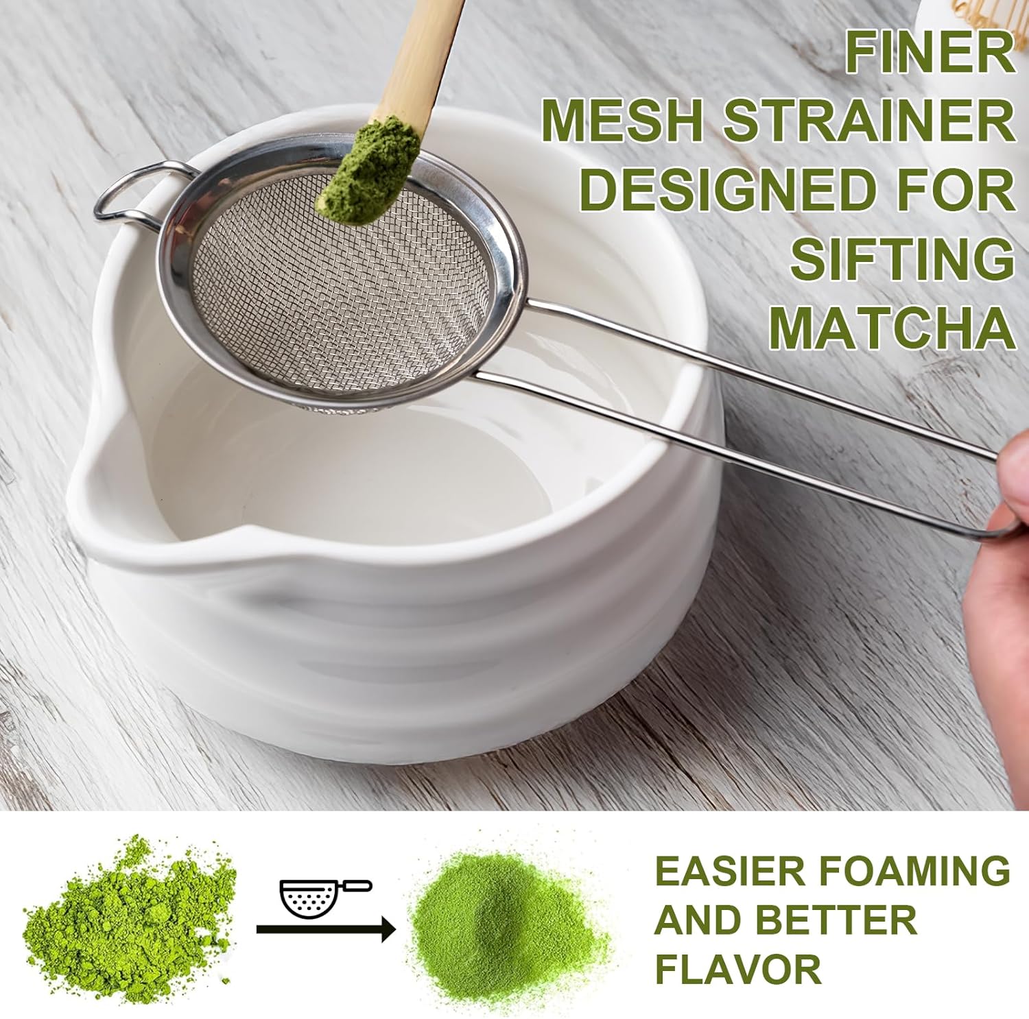 - ✅【COMPLETE 8-PIECE MATCHA SET】Everything you need for an authentic matcha set experience: white matcha bowl (chawan), bamboo whisk (chasen), ceramic whisk holder, bamboo scoop (chashaku), scoop rest, stainless steel sifter, tea towel, and a large matcha set storage box.
