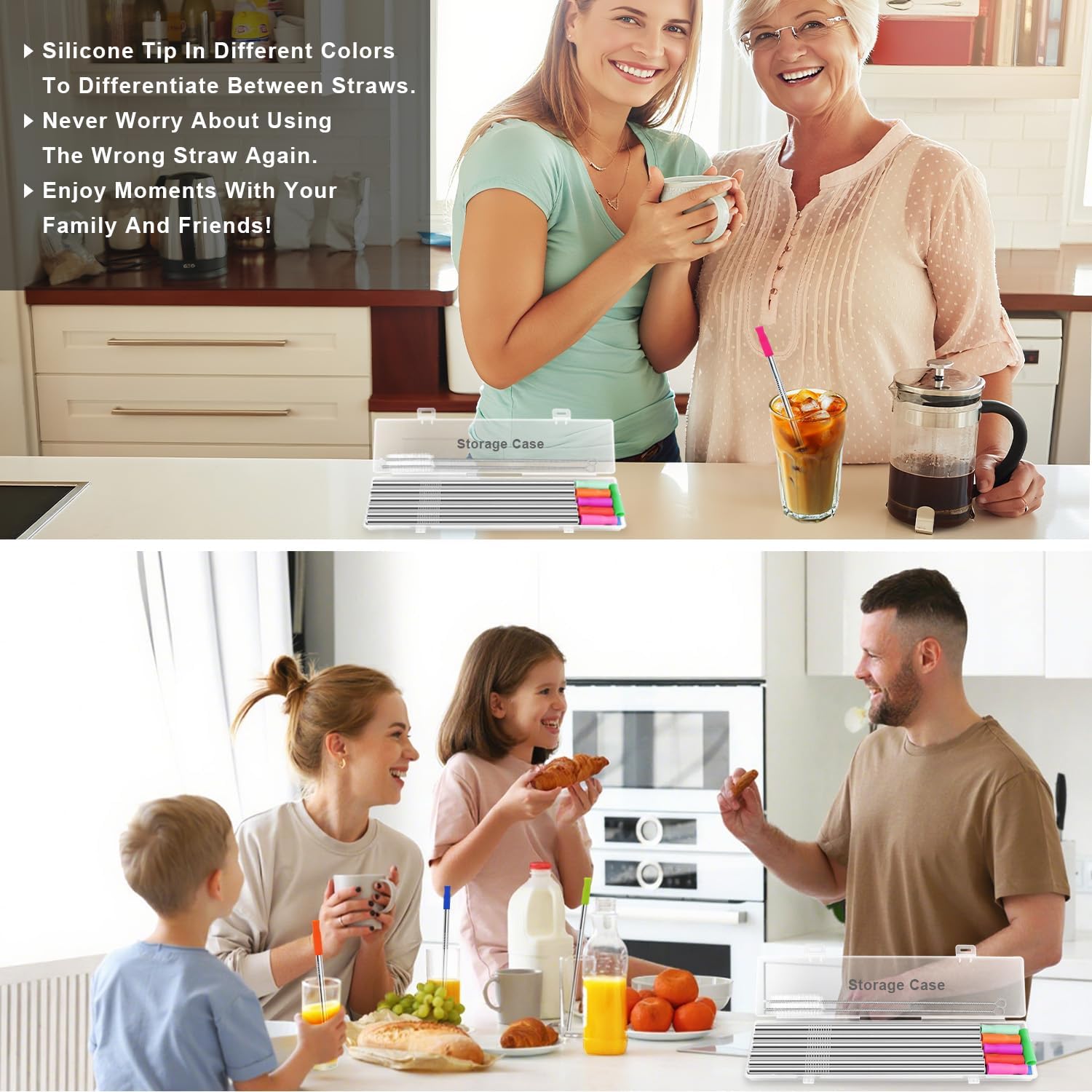 - SAFETY & ENVIRONMENTAL FRIENDLY : Removable food-grade silicone tip, dust and splash proof,friendly to people with sensitive teeth, comfortable and soft, prevents our mouths from touching the stainless steel straw directly to keep away from the metallic taste and protects your lips from overheating or overcooling. Dishwasher safe, enjoy smoothies, milk tea, juice anytime, anywhere. Multiple colors make it easy to differentiate the straws, not easy to use the wrong one