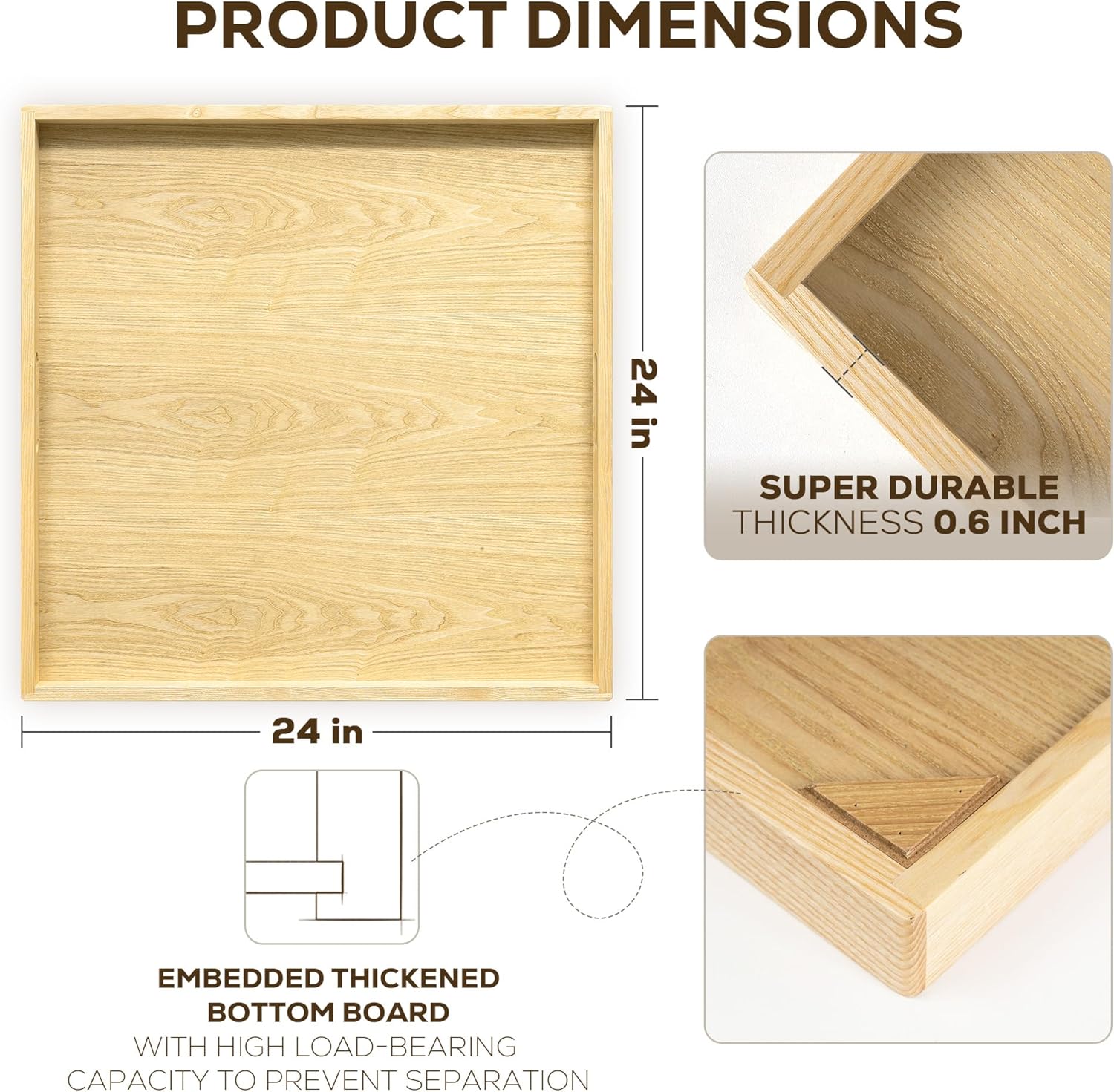 - Crafted from premium Ash wood, this large wooden tray boasts unique grain patterns and rich hues, making it both a beautiful and functional work of art for your home.