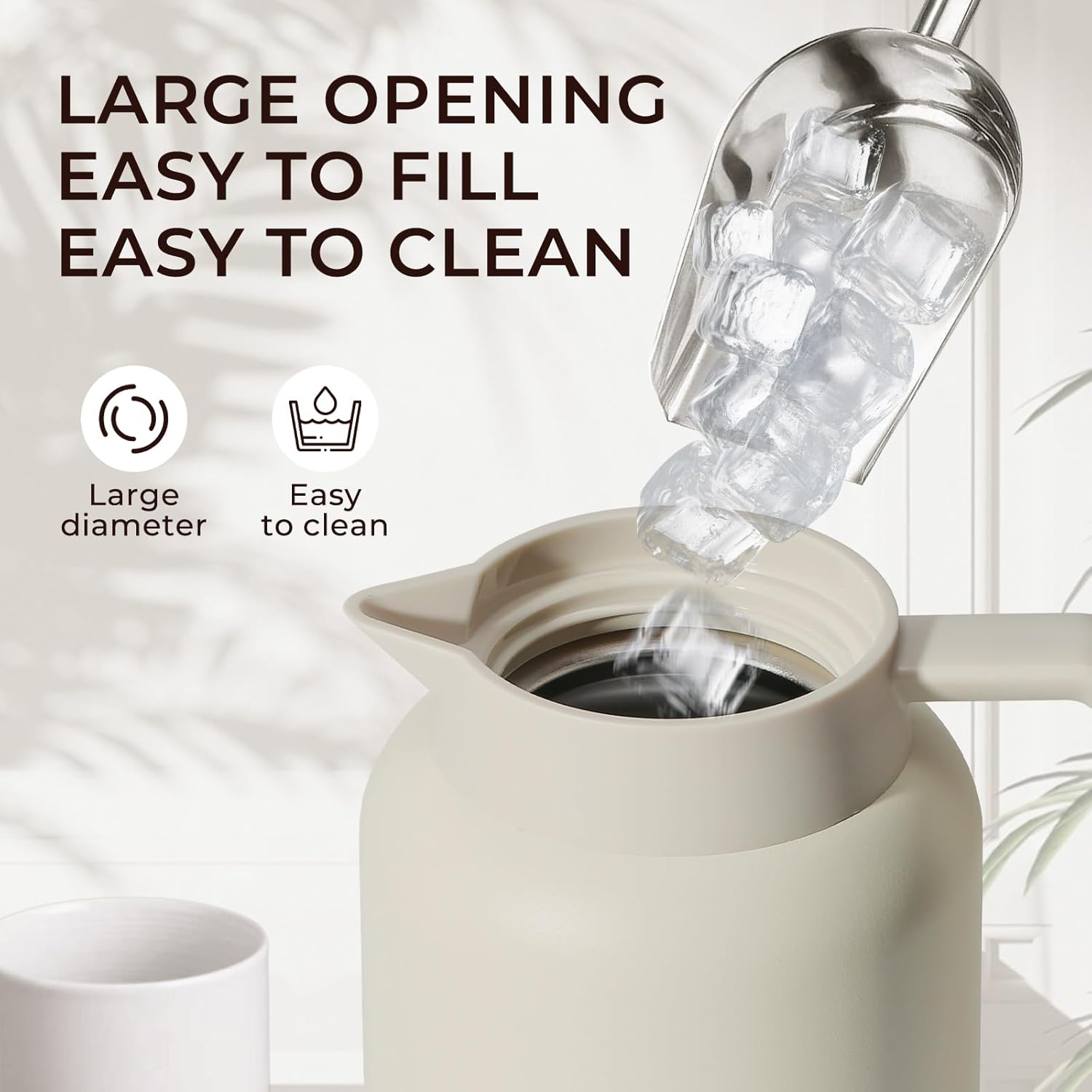 - 【LEAK PROOF】Both feature leak-proof lids. Our coffee carafe lid with food safe silicone ring, which is leak proof and always locks into place when closing your pitcher.Effectively prevent water leaking.Even with a slight tilt our thermal coffee carafe will not leak one single drip.