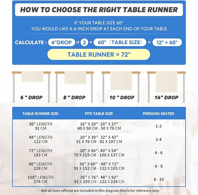 - Fits Table Size : This table runner is 13 x 120 inch, appropriate for a table that can seat 10-12 people, better match your table and give you a delightful dining experience