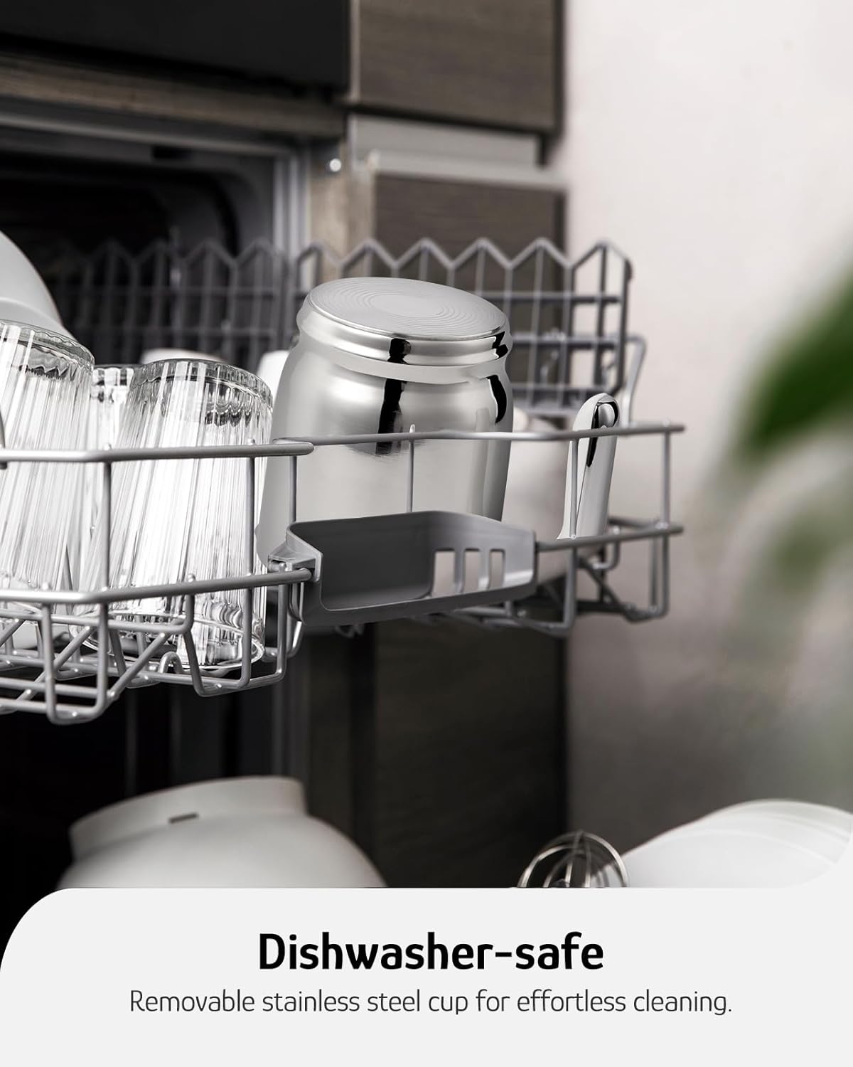 - Magnetic & Detachable Design - Experience stability with the magnetic attraction between the cup and base during frothing, eliminating spill worries. The detachable cup is dishwasher-safe for a convenient and effortless clean.