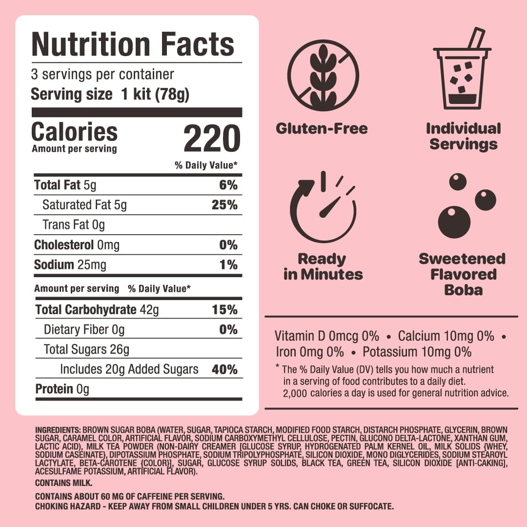 - CONVENIENT AND EASY - Forget large batches, using bubble tea machines or washing pots & pans to make bubble tea. Take a Pearl set to the office or school for an easy snack, or stock up your pantry for at home use! WHAT IS INSIDE- 3 Individually wrapped portions of brown sugar flavored pearl, 3 Classic milk tea packets, & 3 extra wide paper straws. Store in a cool, dry place (no refrigeration necessary).