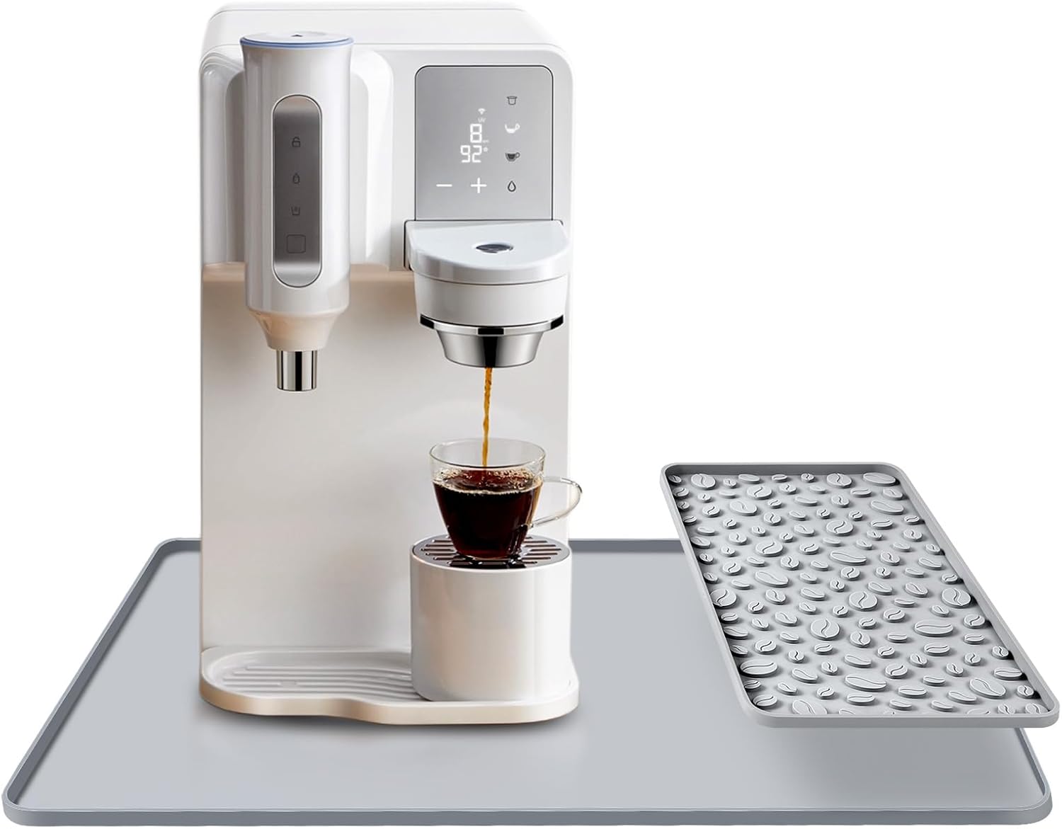 - Rempvable Deslgn: Silicone coffee mat features an innovative two-part design. large mat size: 24X16 inches, provides a spacious, heat-resistant countertop for the coffee machine ; small mat 15.7X7.5 inches, bar mats for countertop 0.4 inches in height.
