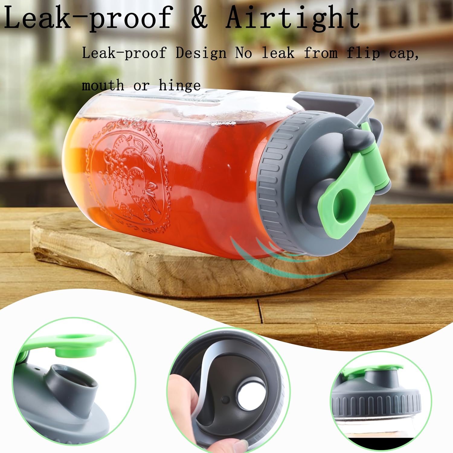 - LEAK PROOF & AIRTIGHT STORAGE - Mason Jar coffee Pitcher with silicone seal that will ensure not leak what so ever (even while shaking it upside-down). The top flip cap has a secure snap fit closure that will not leak neither. Airtight container to keep your drinks fresh!