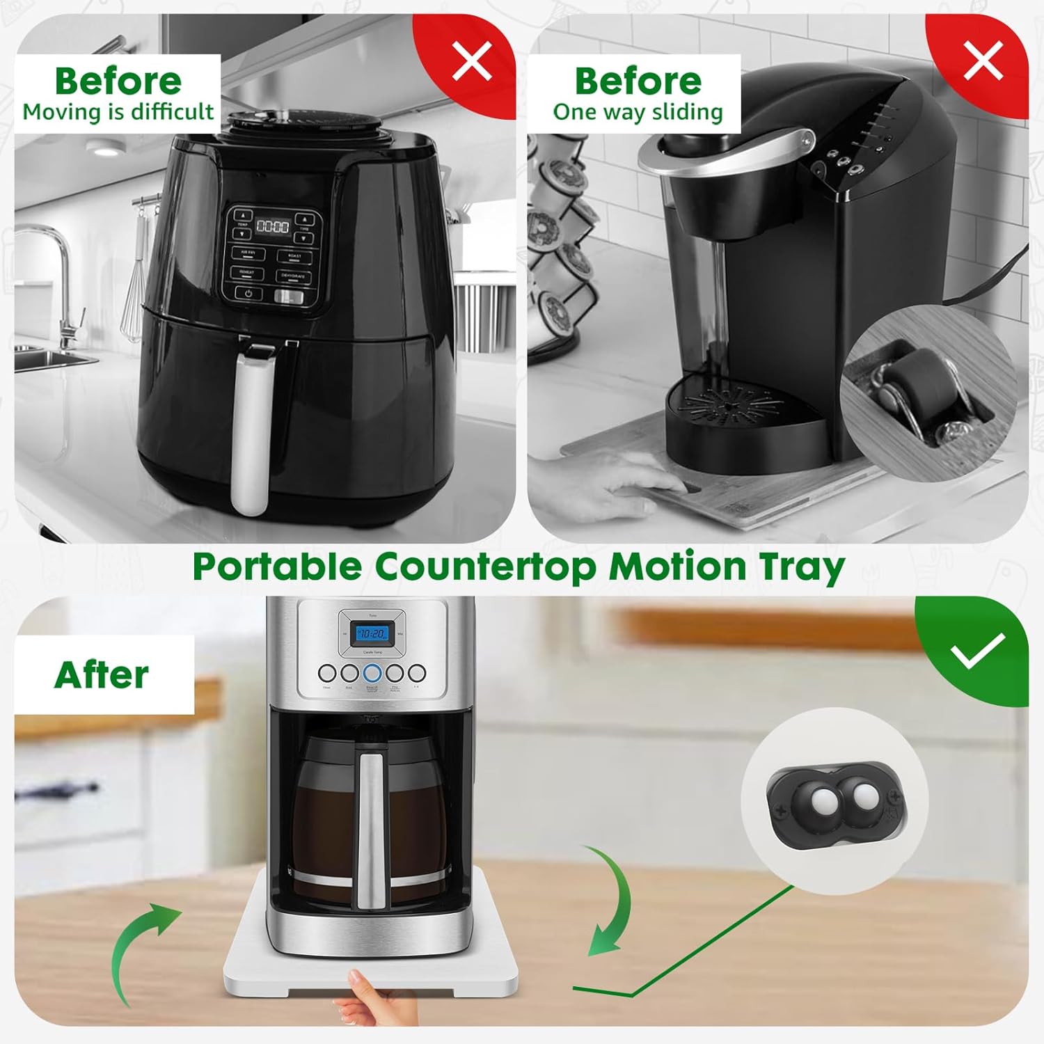 - 【360° Countertop Mobility】The appliance slider is equipped with 360° rollers for all-around mobility, making it easy to move various kitchen appliances.