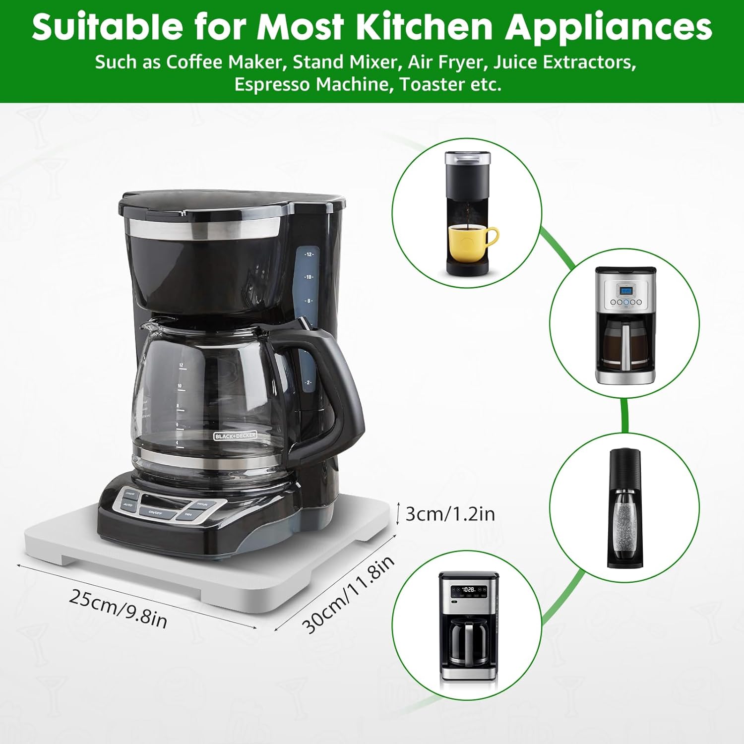 - 【Multi-functional Sliding Tray】Slider size 11.8" × 9.8" × 0.6", suitable for Keurig K-Mini, Ninja,small coffee makers, espresso machines, air fryers, toasters and stand mixers.