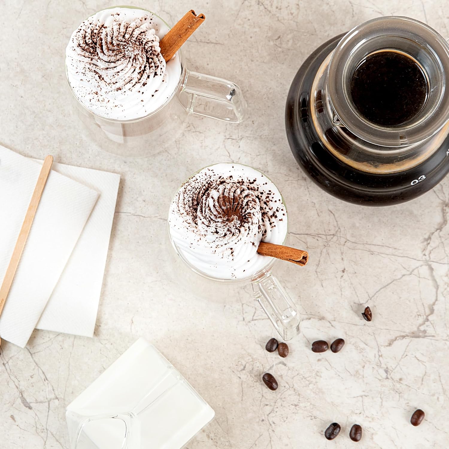 - ROBUST BOROSILICATE GLASS: Made from strong borosilicate glass, these clear coffee mugs with handle defy scratches and breaks, ensuring long-lasting performance. Handle for a comfortable grip!