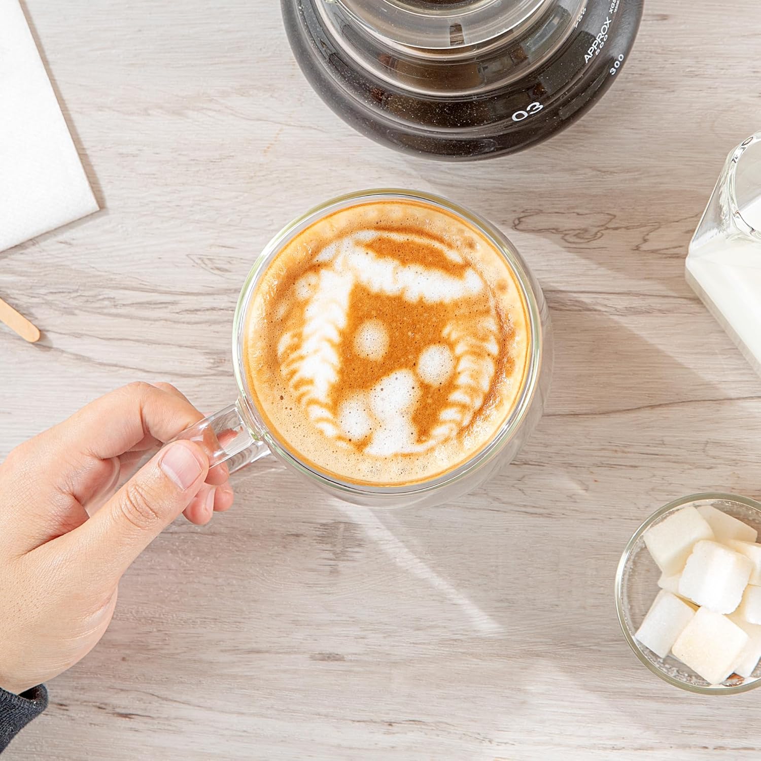 - ROBUST BOROSILICATE GLASS: Made from strong borosilicate glass, these clear coffee mugs with handle defy scratches and breaks, ensuring long-lasting performance. Handle for a comfortable grip!