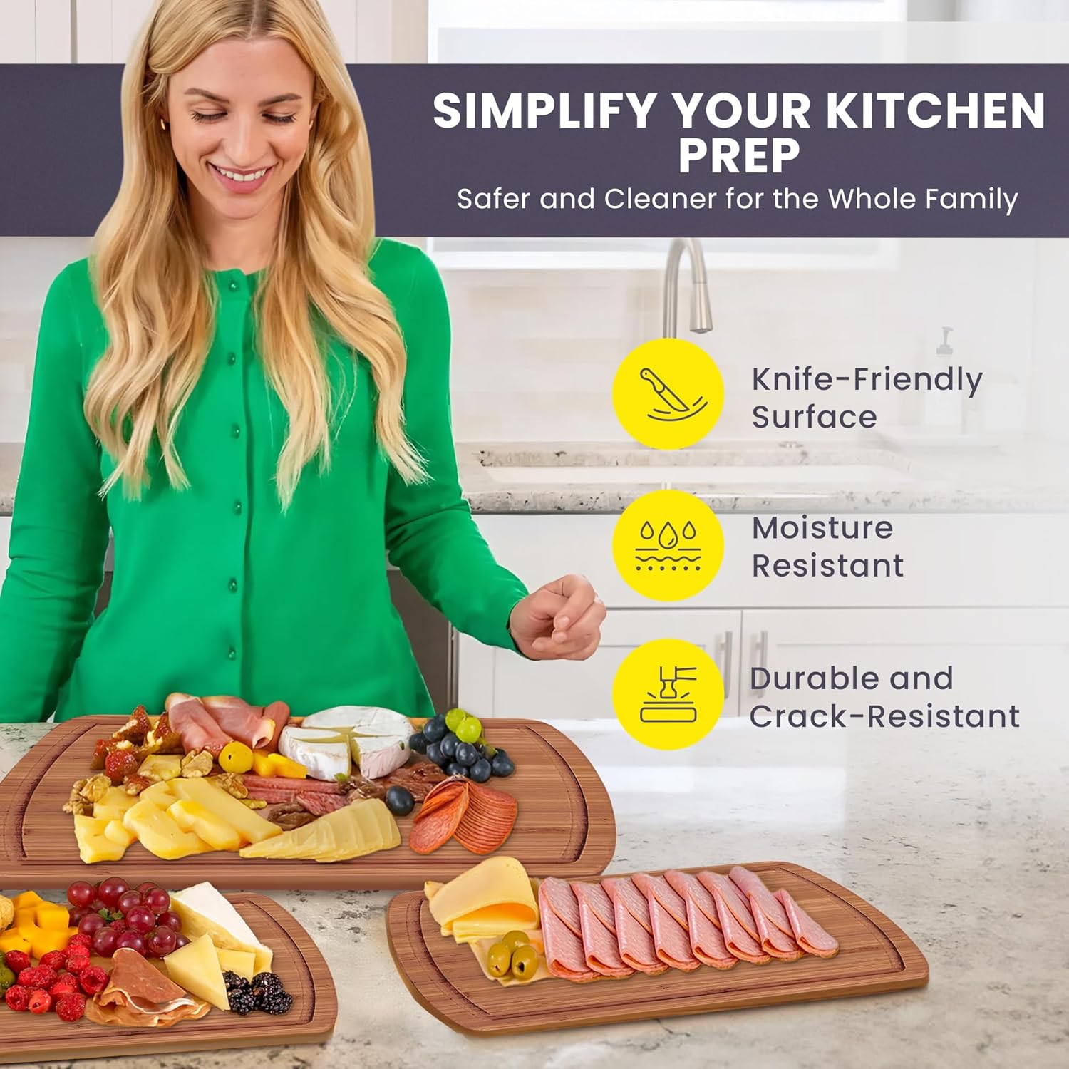 - CHOP FOREVER, GUARANTEED: Knife-friendly bamboo cutting board set lasts a lifetime, warranted. Skip flimsy cheap sets that crack—choose lasting quality.