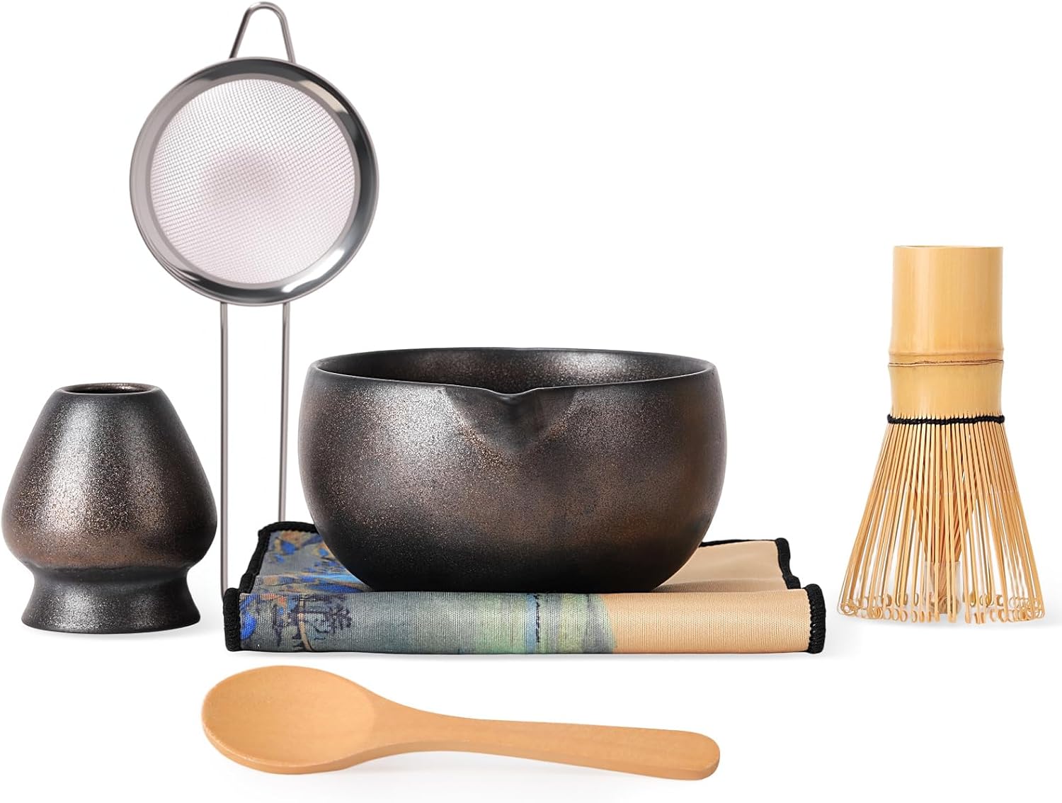- Your Complete Matcha Starter Kit:Jumpstart matcha rituals with this 6-piece matcha whisk set. The 100-prong chasen creates silky foam fast, while the spouted ceramic bowl pours cleanly. Includes stainless steel sifter for lump-free powder—perfect for beginners and matcha lovers!