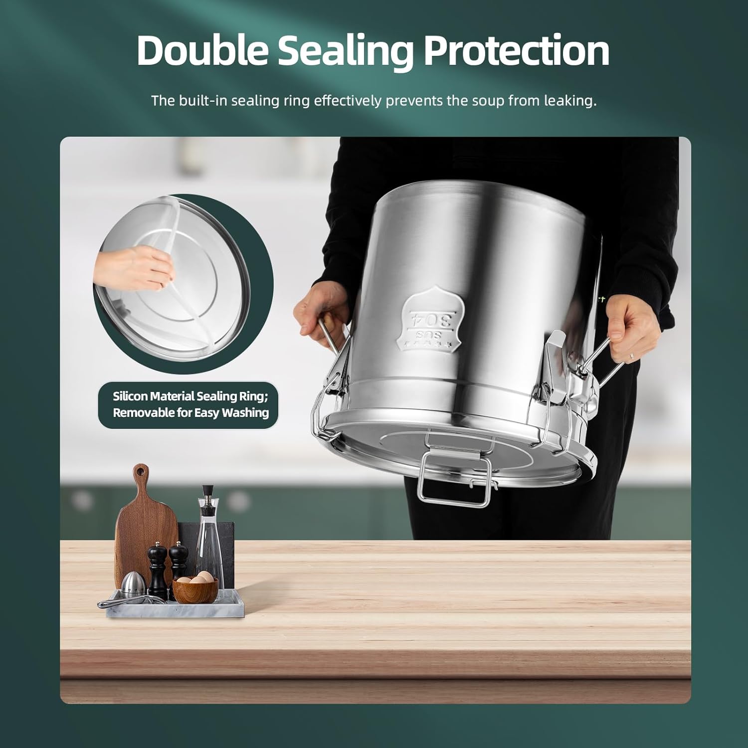 - 【Double Sealed Protection】 - Three sturdy sealing clasps securely lock the bucket and lid, leaving no gaps to prevent mosquitoes and other insects from intruding. Built-in anti-leakage sealing ring, strong sealing, effectively prevent soup from leaking out