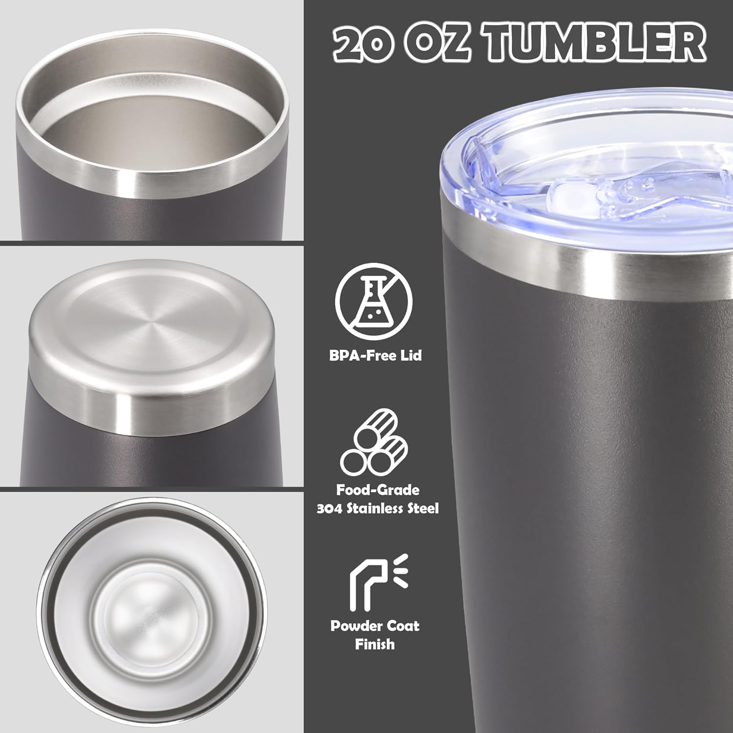 20oz Tumbler Bulk Stainless Steel Tumbler Cup with Lid Vacuum Insulated Double Wall Travel Mug, Durable Powder Coated Travel Coffee Tumbler Mug for Hot & Cold Drinks, Grey,12 Pack