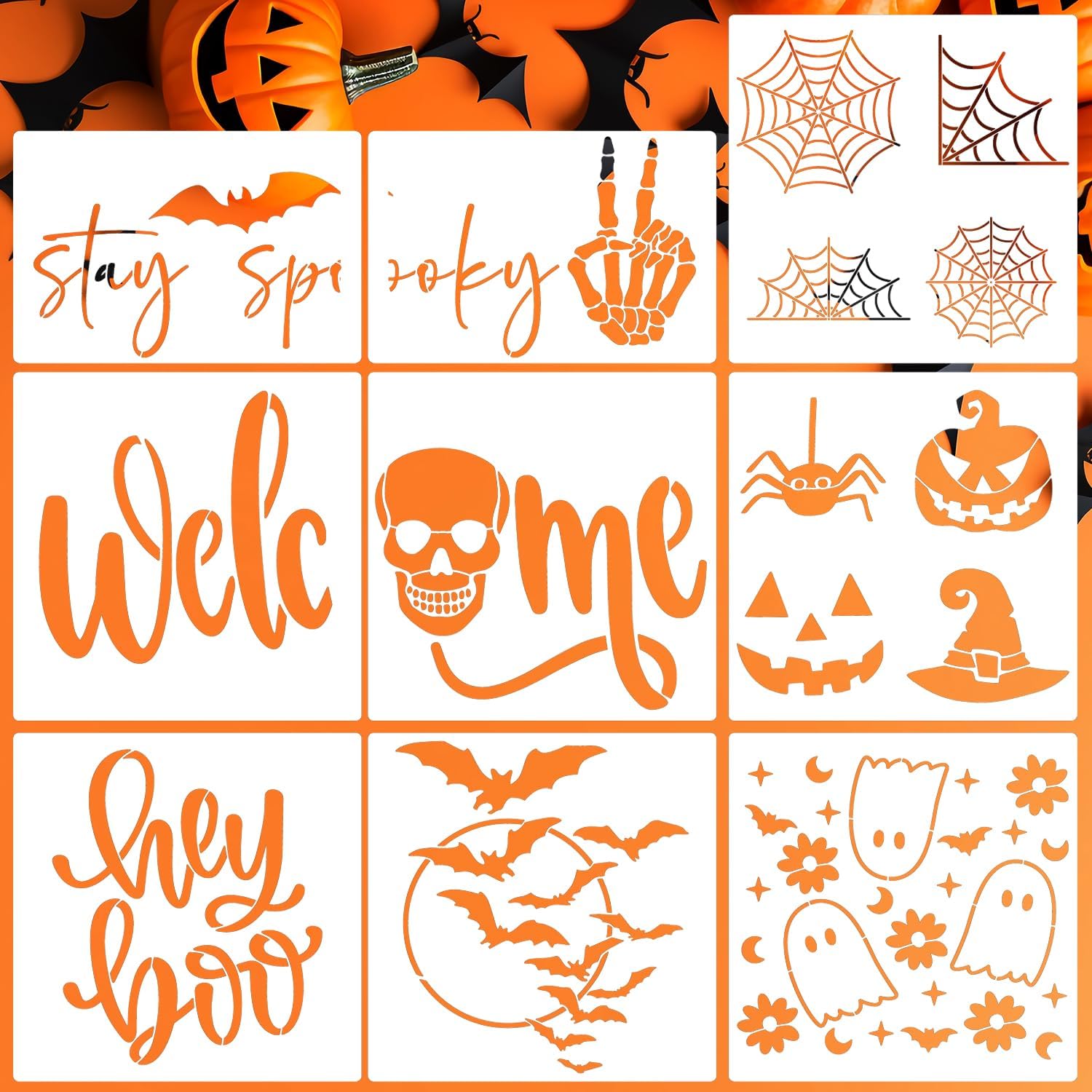 - Package Included: 9pcs Halloween doormat stencils,suitable for large wood sign and door mats decor.