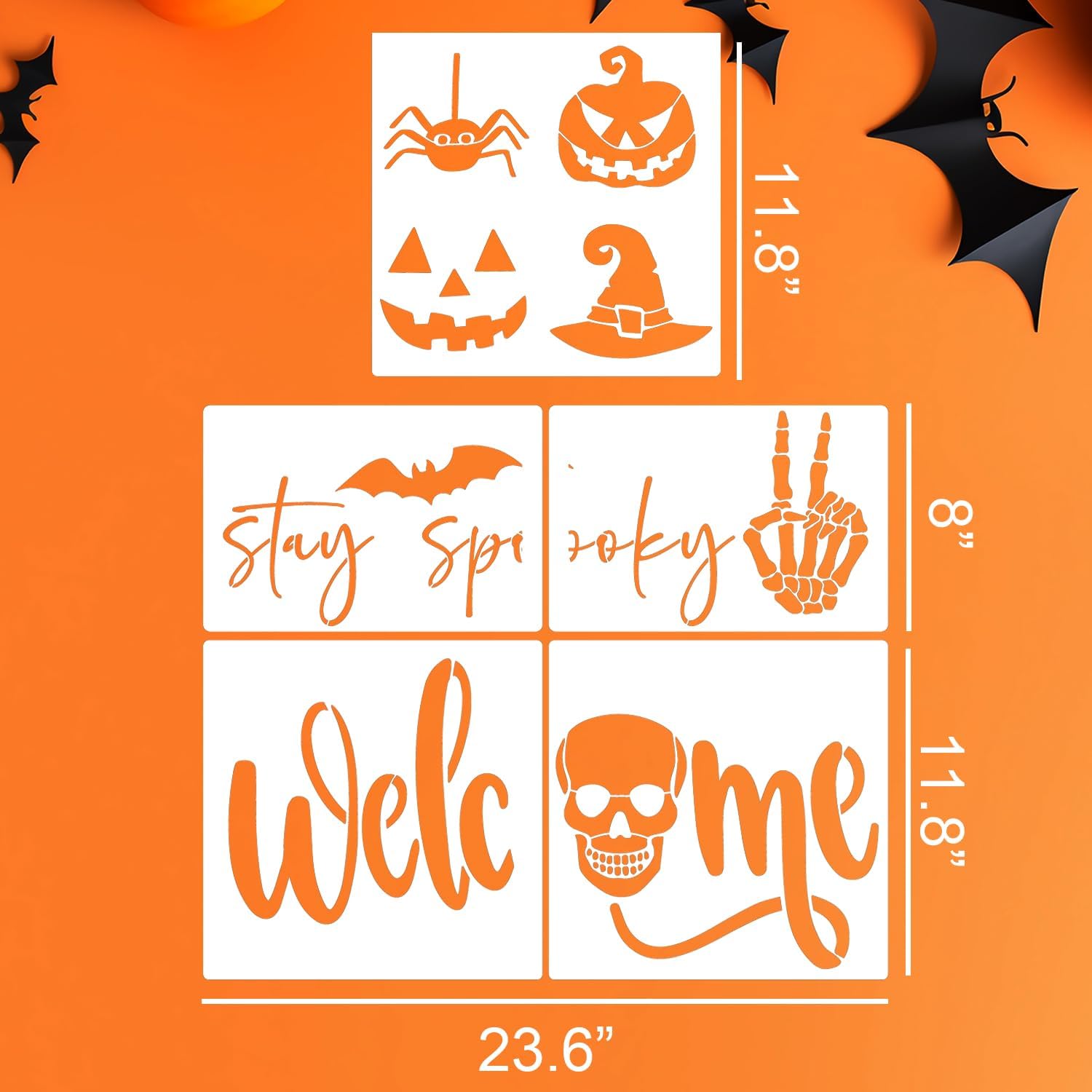 - Halloween Doormat Stencils:Connect 2 stencils and then add patterns including bats,spider,webs,ghost,great for the 30x18inch and 36x24inch doormat.