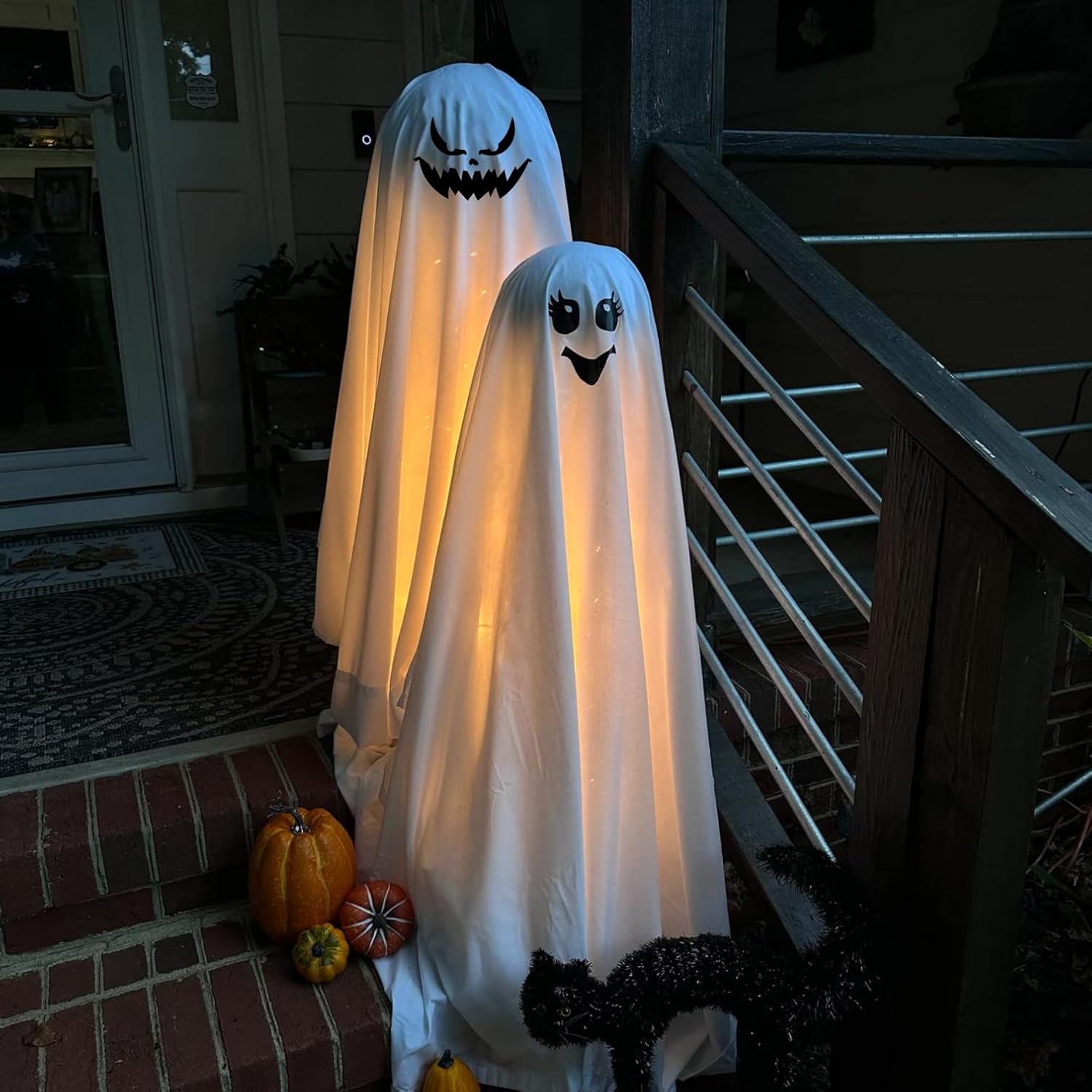 - Halloween Stencils:12 style Halloween stencils in 2 sizes:7.8inch and 5inch.Patterns include pumpkin face and ghost face.Great for doormats,wood sign,fabrics decorating.