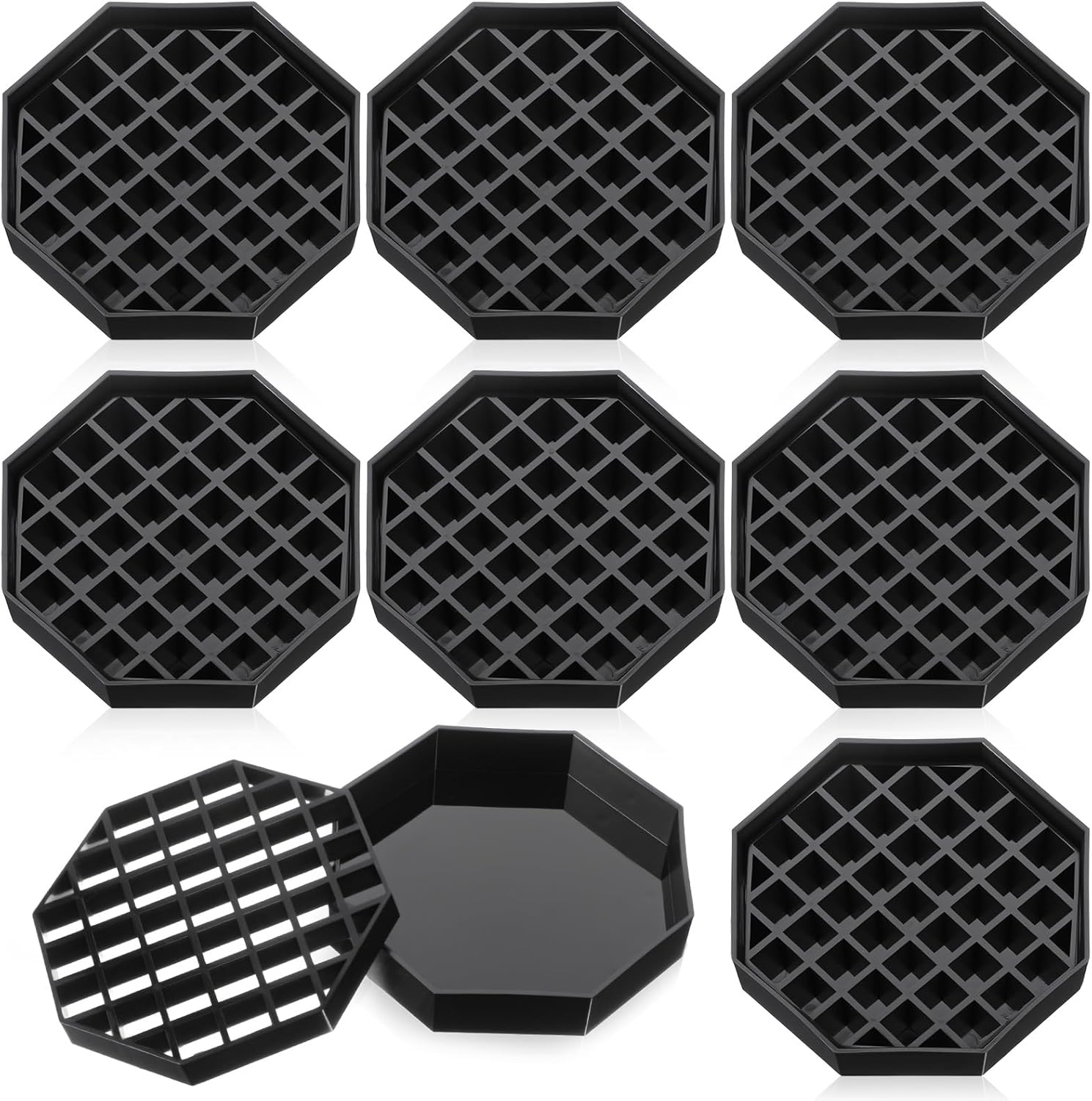 8 Pcs Coffee Drip Tray Black Plastic Octagon Coffee Countertop Drip Coaster with Honeycomb Grid for Drink Tea Wine Beverage Dispenser (4 Inch)