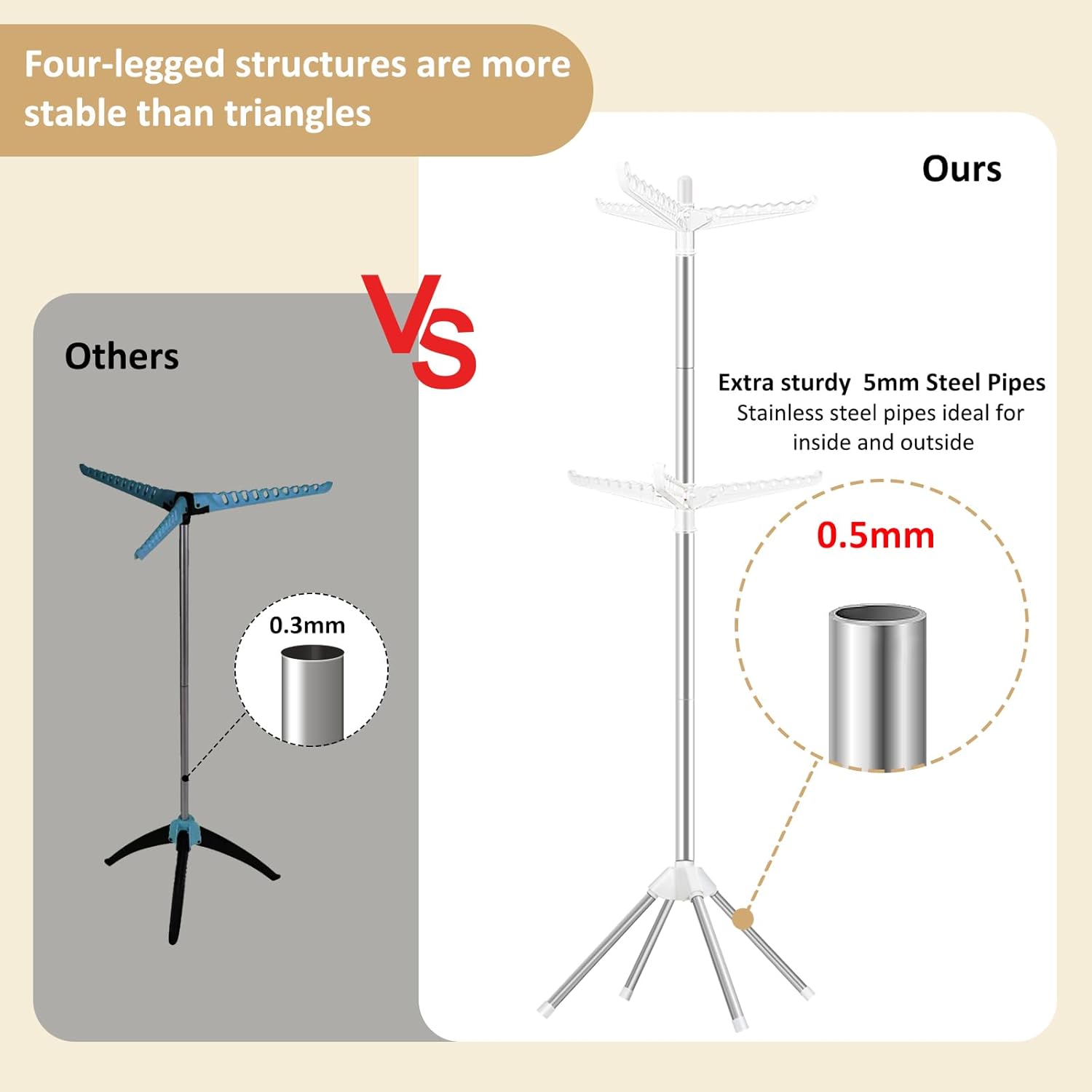- [Sturdy & Durable Construction] Crafted from premium materials, the 4-leg design offers enhanced stability over traditional 3-leg racks, providing robust support for wet or semi-dry clothes with the promise of long-lasting durability for everyday use.