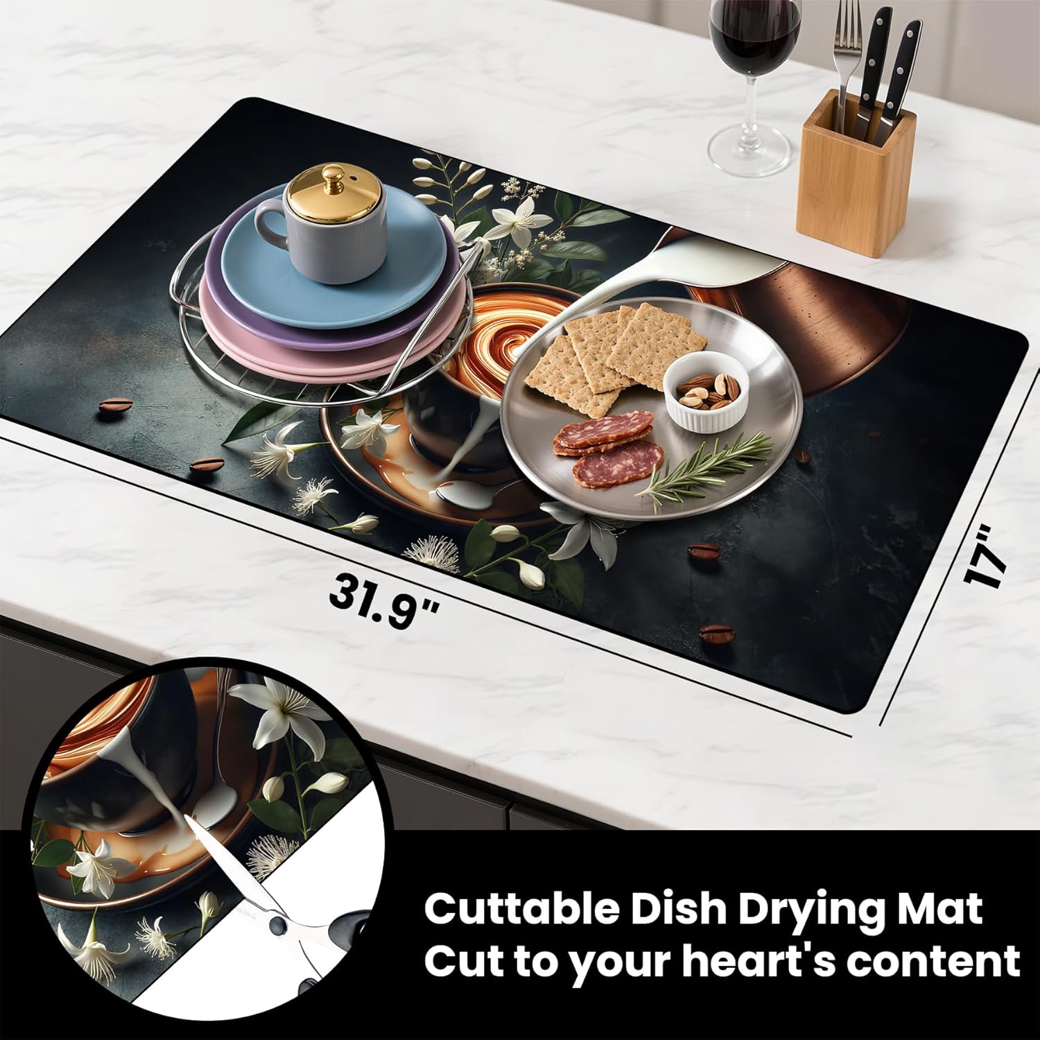 17"x 32" Coffee Bar Mat, Coffee Latte Art Absorbent Dish Drying Mat Cuttable Hide Stain Draining Table Pad for Kitchen Counter, Coffee Bar Accessories