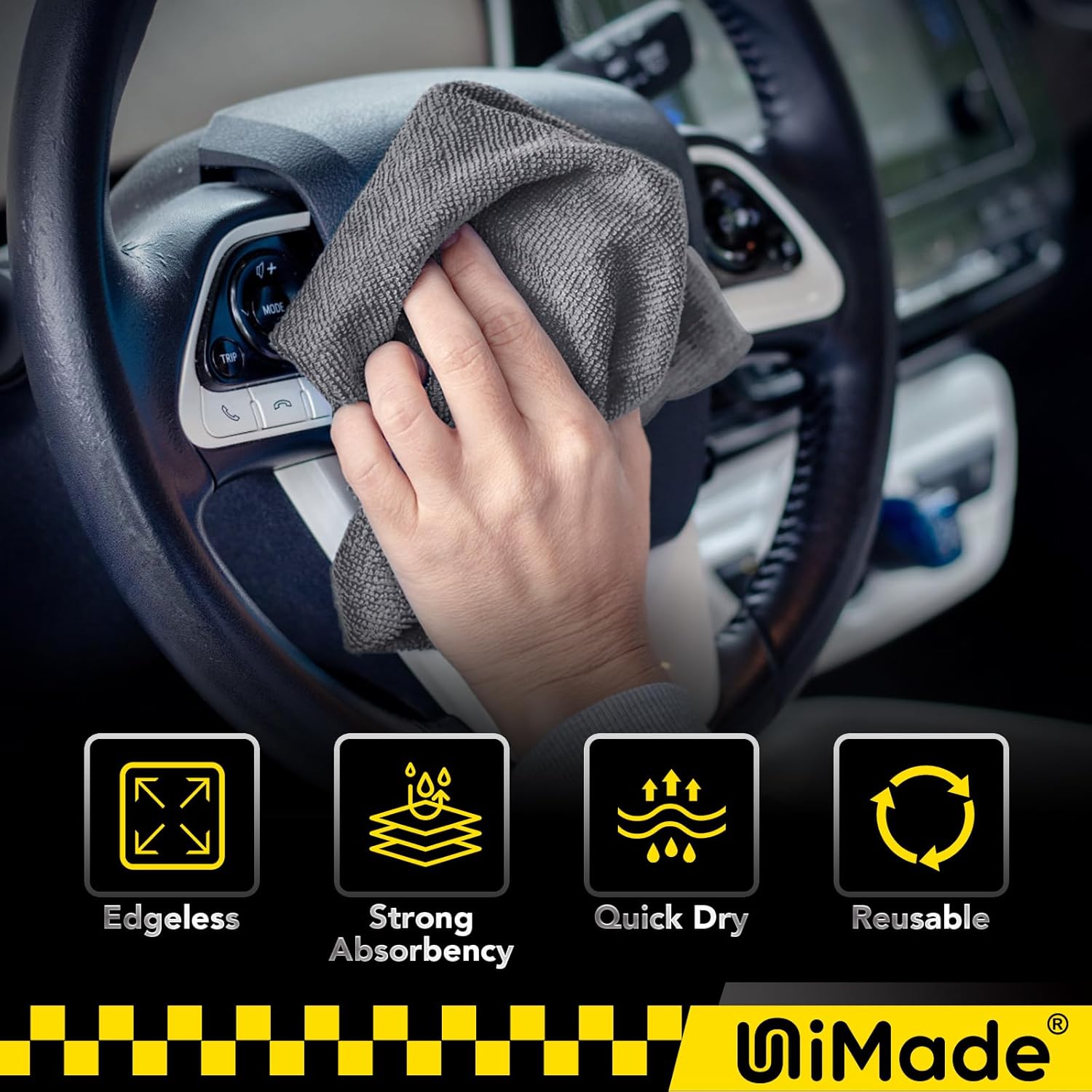 Microfiber Cleaning Cloth, 100 Pack Microfiber Towels for Cars Commercial Grade Work Rags Bulk Detailing Cloth for Automotive Bar Mechanic Restaurant Garage Housekeeping, 11.5"x 11.5", Grey