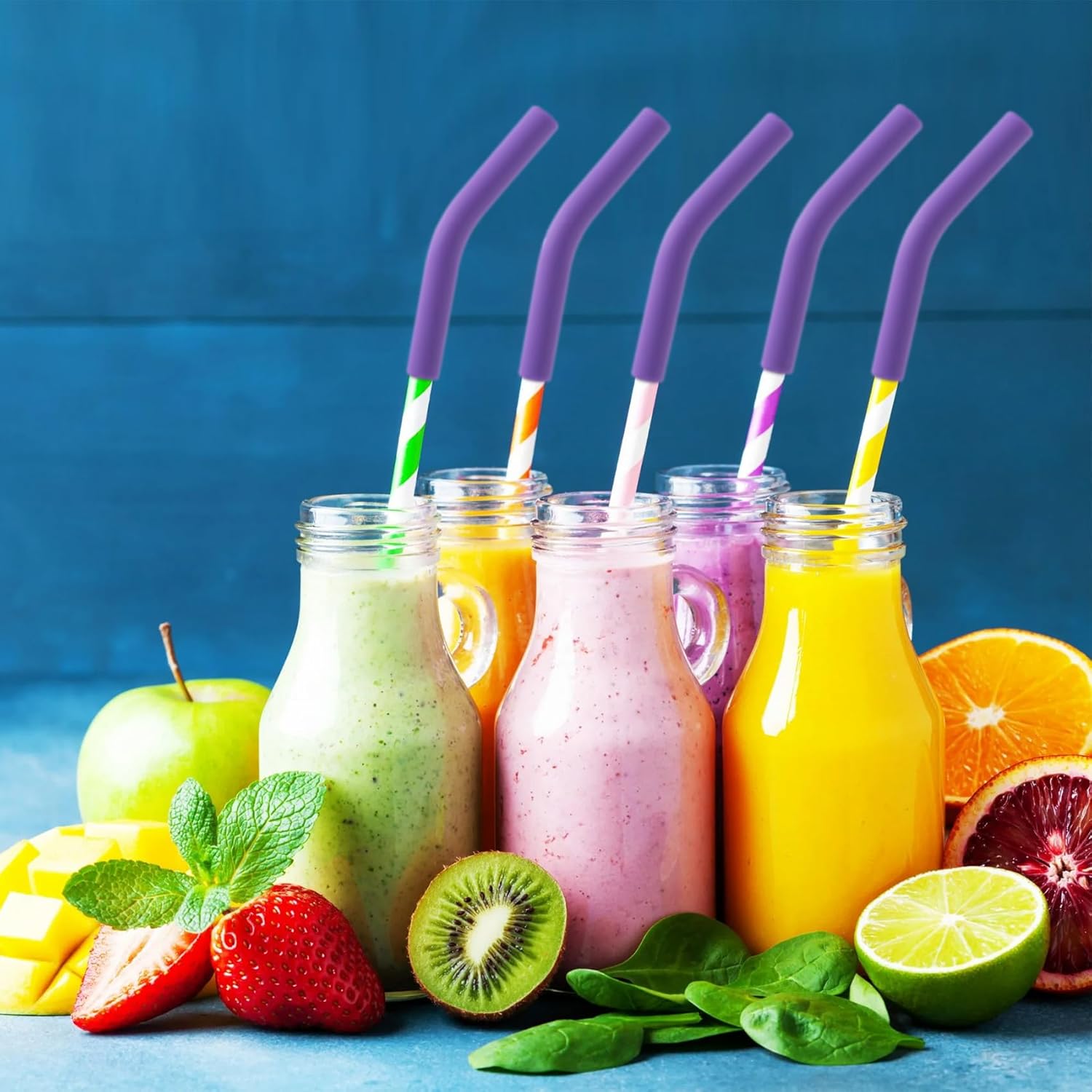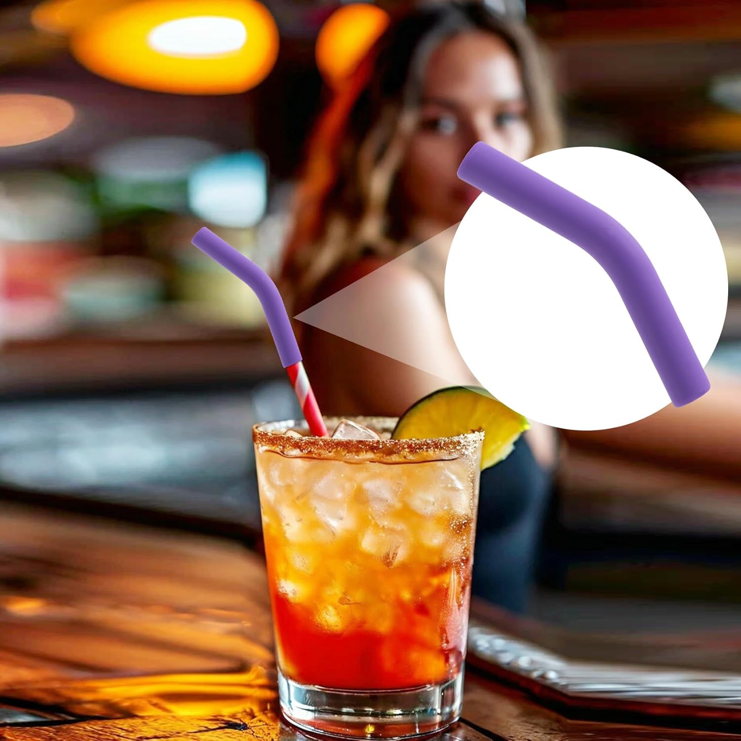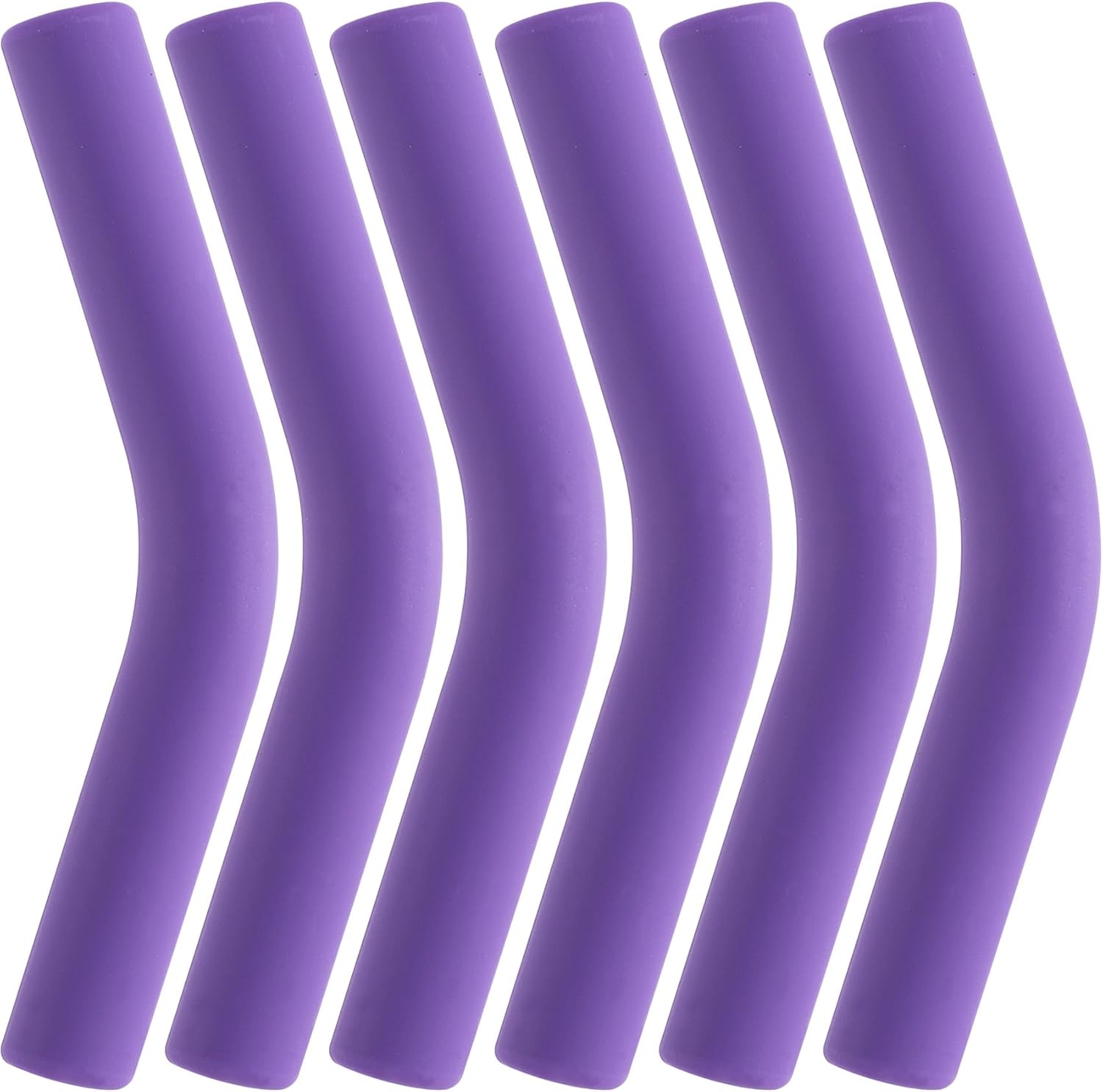 6pcs Food-Grade Silicone Metal Straw Tips, Reusable Flex Elbow Straws Cover Replacement Tips, Soft Straw Toppers Kits for 8 mm Stainless Steel Metal Straws - Dark Purple