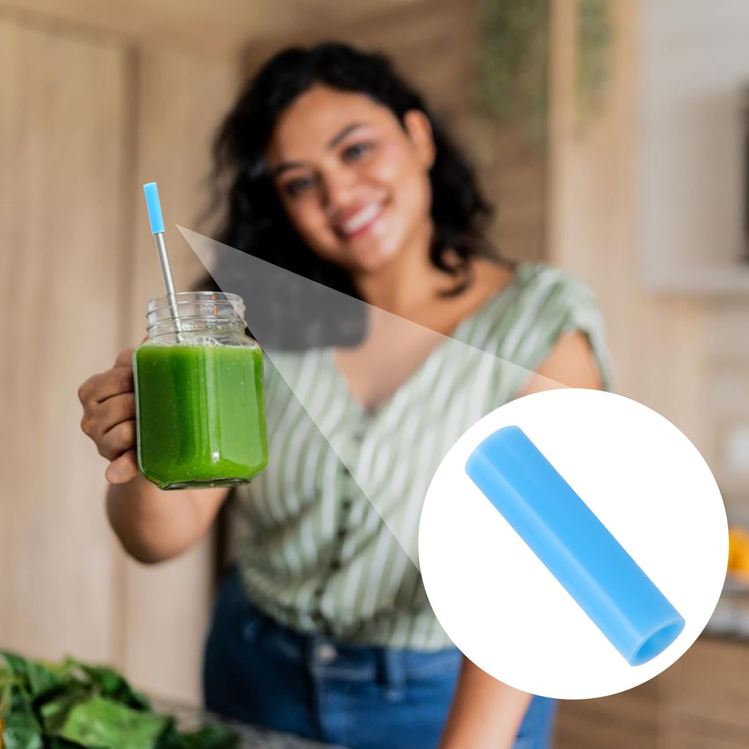 12pcs Food-Grade Silicone Metal Straw Tips, Reusable Straight Straws Cover Replacement Tips, Soft Straw Toppers Kits for 8 mm Stainless Steel Metal Straws - 6 Colors