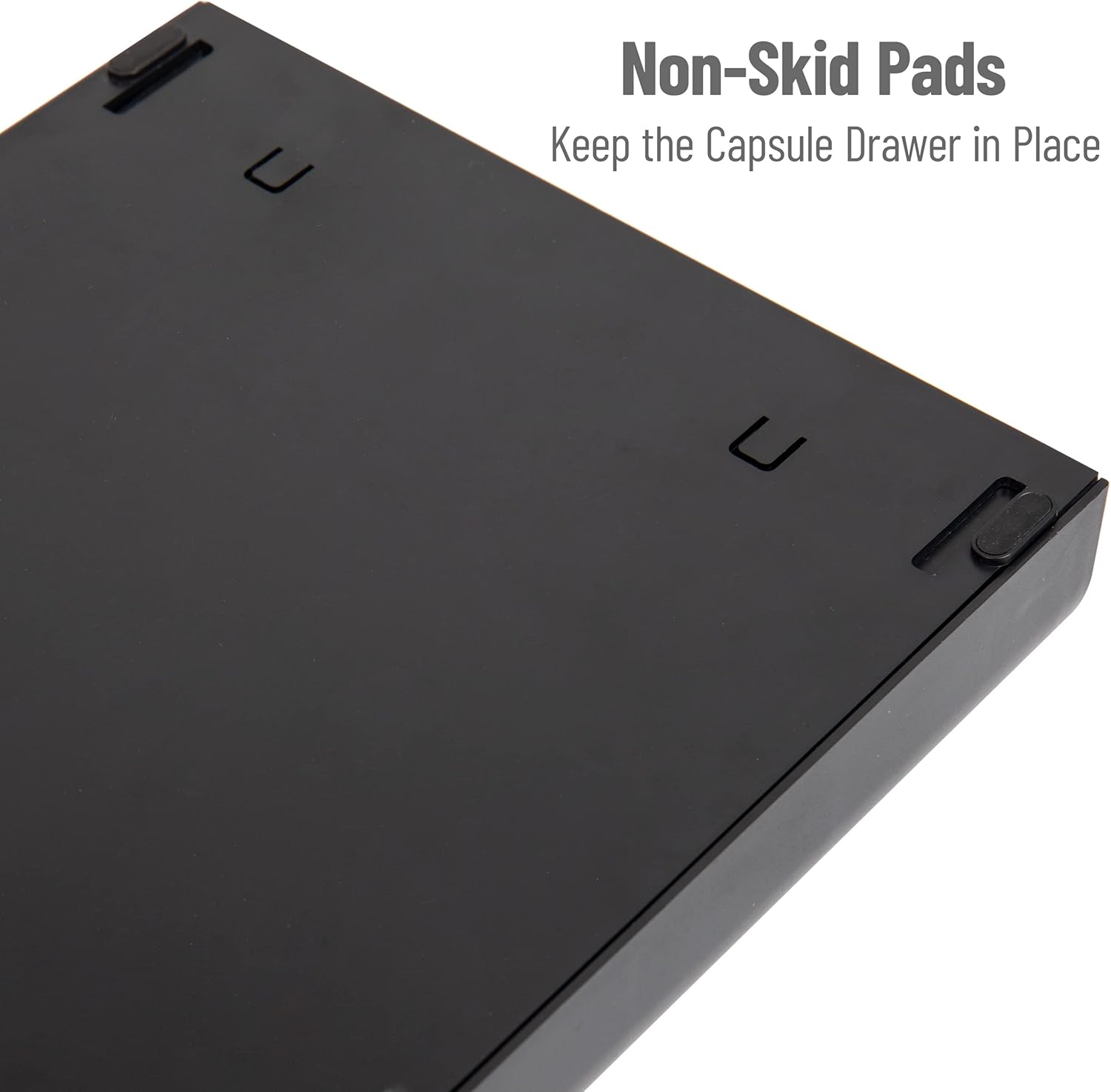 - Space-Saving Design: The coffee drawer sits neatly under your coffee brewer, keeping your countertop neat and clutter-free, while providing ample storage for your coffee capsules