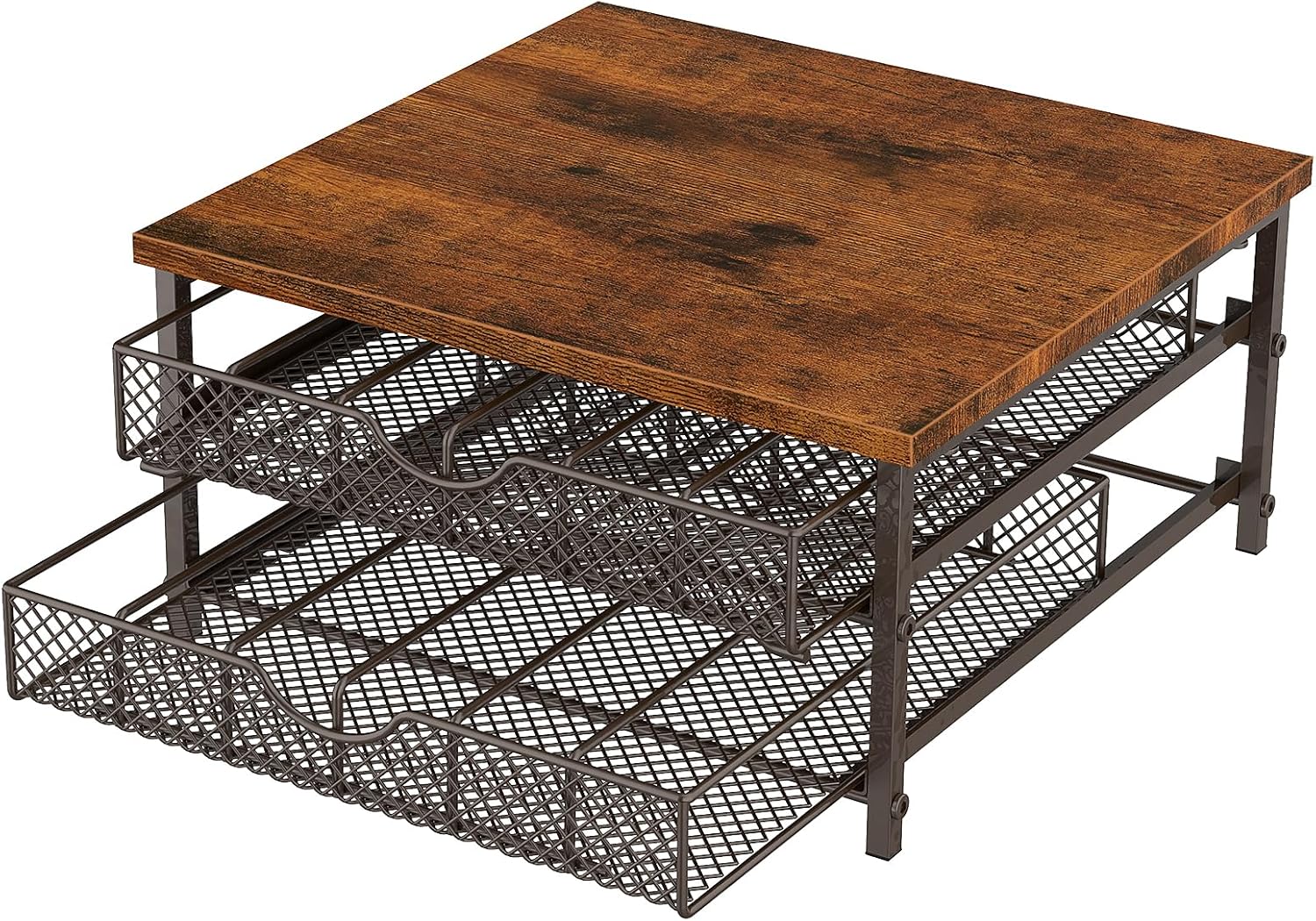 - Quality Materials: The pod storage drawer for k cups is made from a combination of solid metal and quality wood, sturdy and practical. The metal mesh basket keeps the aeration drying. The top wood board can place your coffee machine, is waterproof and easy to clean. It has excellent convenience and keeps your home clean and tidy.