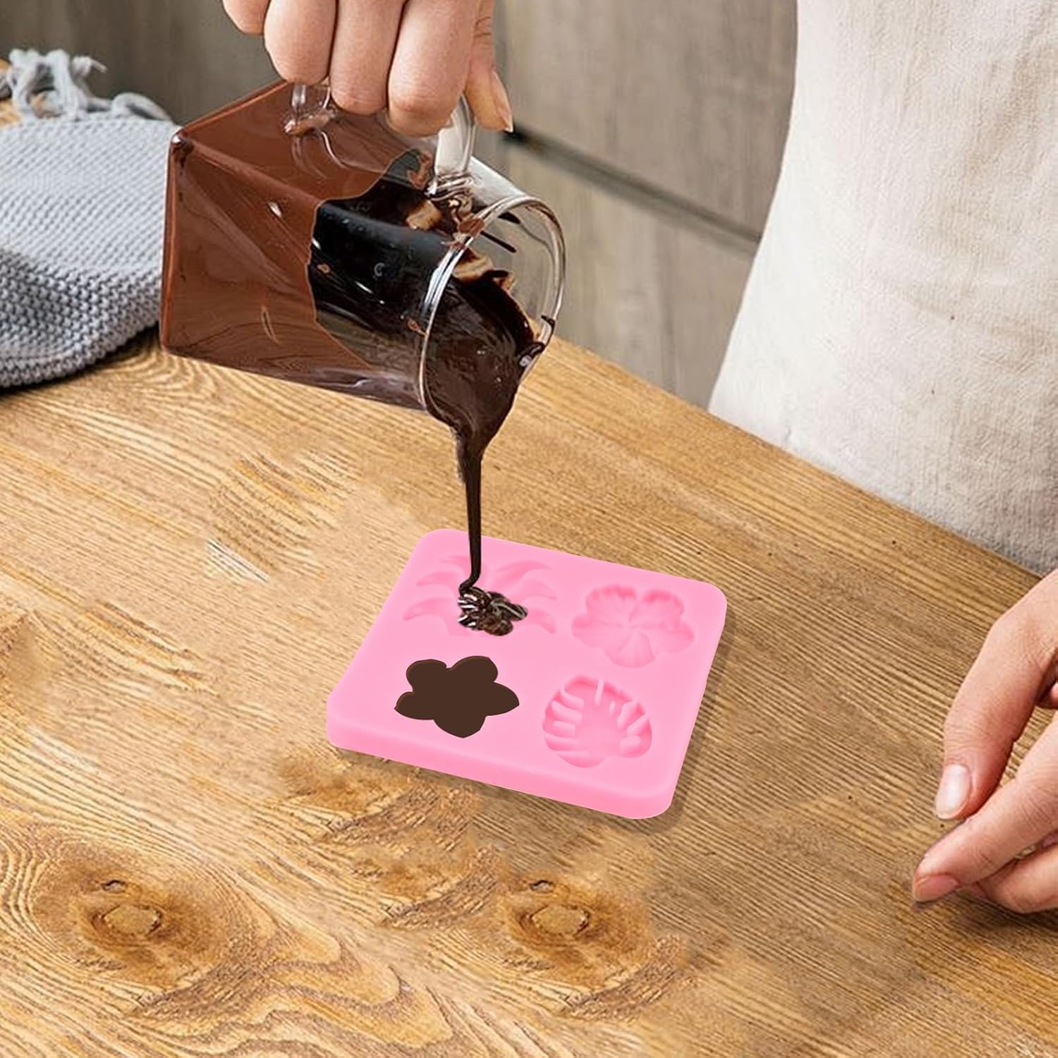 2 Pcs Tropical Flowers and Leaves Silicone Mold Set Plumeria,Hibiscus,Monstera Leaf for Diy Chocolate,Candy,Gummy Molds,Fondant,Cupcake Topper,Hawaiian Party Decoration(Pink)