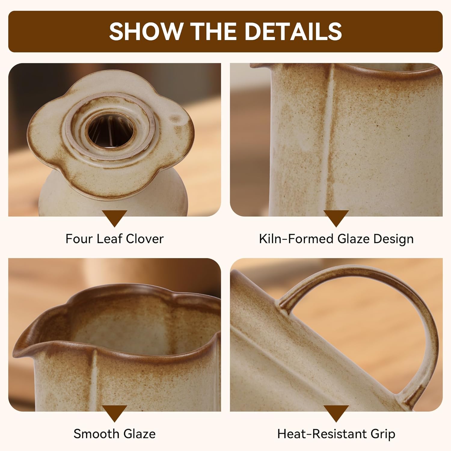 - The ideal gift for your loved ones:This coffee filter cup set includes 17.5 oz ceramic pot x 1,ceramic coffee dripper x 1,paper filter x 20. The four-leaf clover design symbolizes luck, making this coffee maker not just practical, but also heartfelt. Share the joy of a delightful coffee experience with your loved ones.