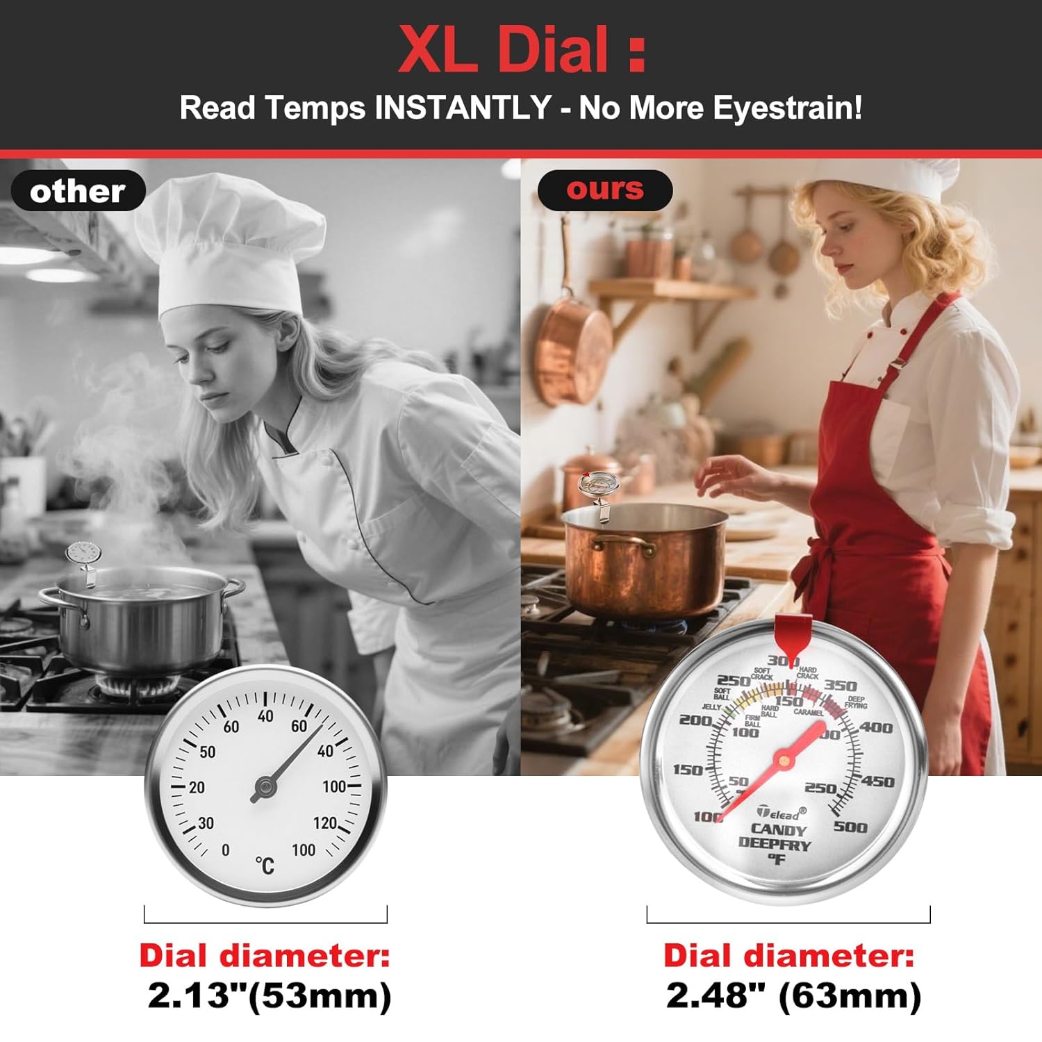- 【Large Dial Easy to Read】 Upgraded with an oversized dial and a minimized bezel, our syrup thermometer provides a clearer and more intuitive reading of the temperature needle. No more squinting—precision at a glance!