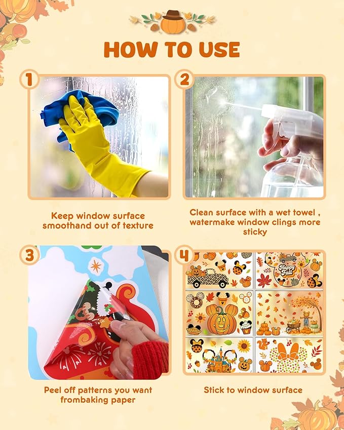 - Perfect Fall Decor: These autumn window clings are ideal for decorating windows, glass doors, mirrors, display cases, offices, schools, and stores. They're perfect for Thanksgiving parties, harvest festivals, and fall-themed events. They also make a thoughtful gift for family and friends. Gather your loved ones to enjoy the fun of DIY decorating and create unforgettable seasonal memories together!