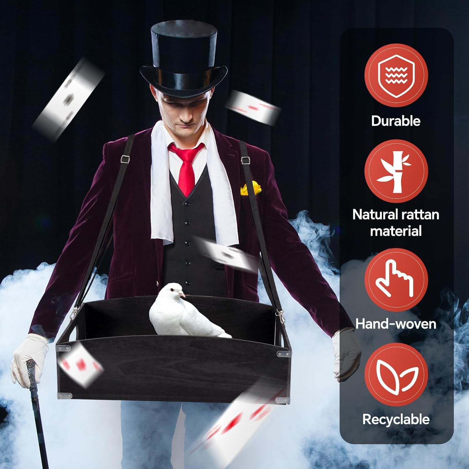 - Complete Vintage Snack Tray Set: Includes 1 large wooden snack tray and 2 adjustable black elastic shoulder straps. A perfect blend of vintage charm and everyday practicality—ideal for 1920s theme parties, carnivals, costume events, and stage performances.