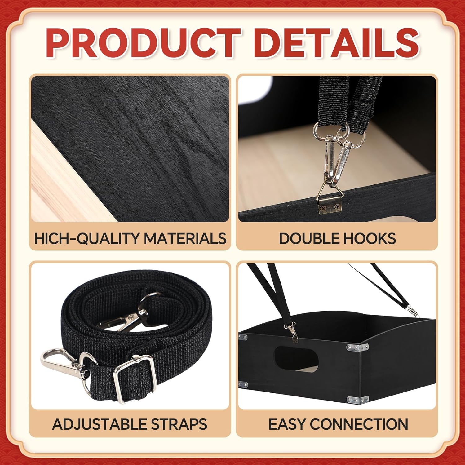 - Durable Wood Construction: Made of solid wood for a classic vintage look that will last. Nylon shoulder straps are strong and sturdy, can bear weight, and stay comfortable during exercise or performance. Please note: For ease of transportation, the product is shipped separately and needs to be installed after receipt