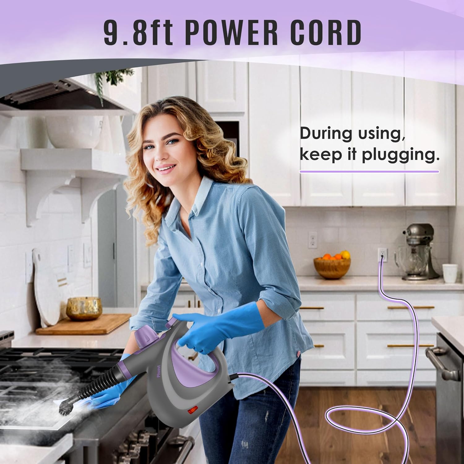 Pressurized Handheld Multi-Surface Natural Steam Cleaner with 12 pcs Accessories, Multi-Purpose Steamer for Home Use, Steamer for Cleaning Floor, Upholstery, Grout and Car (Purple)