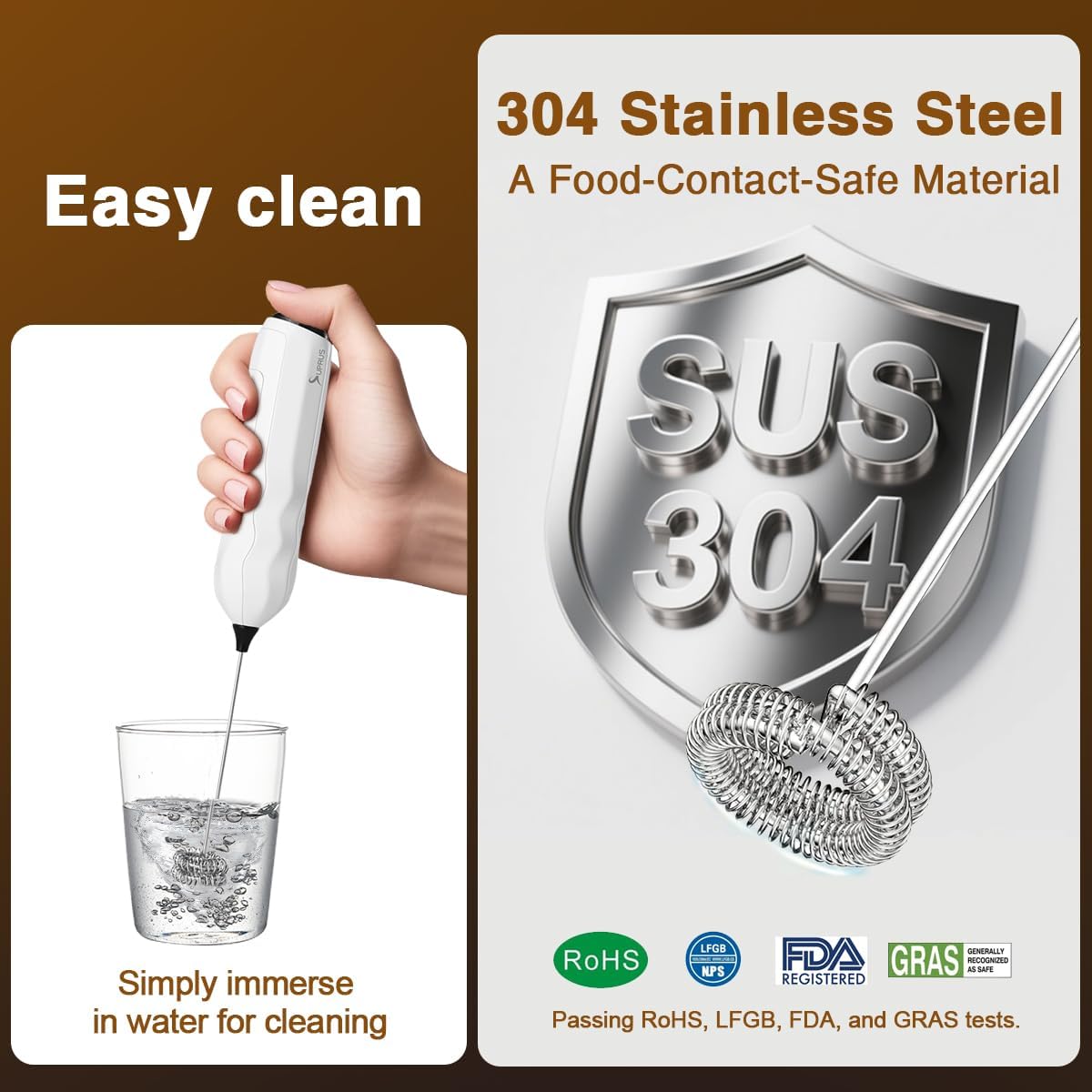 - Barista-Style Froth in 15 Seconds Whip up creamy, velvety foam for lattes, cappuccinos and matcha drinks with our professional handheld milk frother. The dual stainless steel whisks create rich, café-quality froth faster than single-whisk models. Ideal for coffee lovers who enjoy specialty drinks at home without expensive equipment.