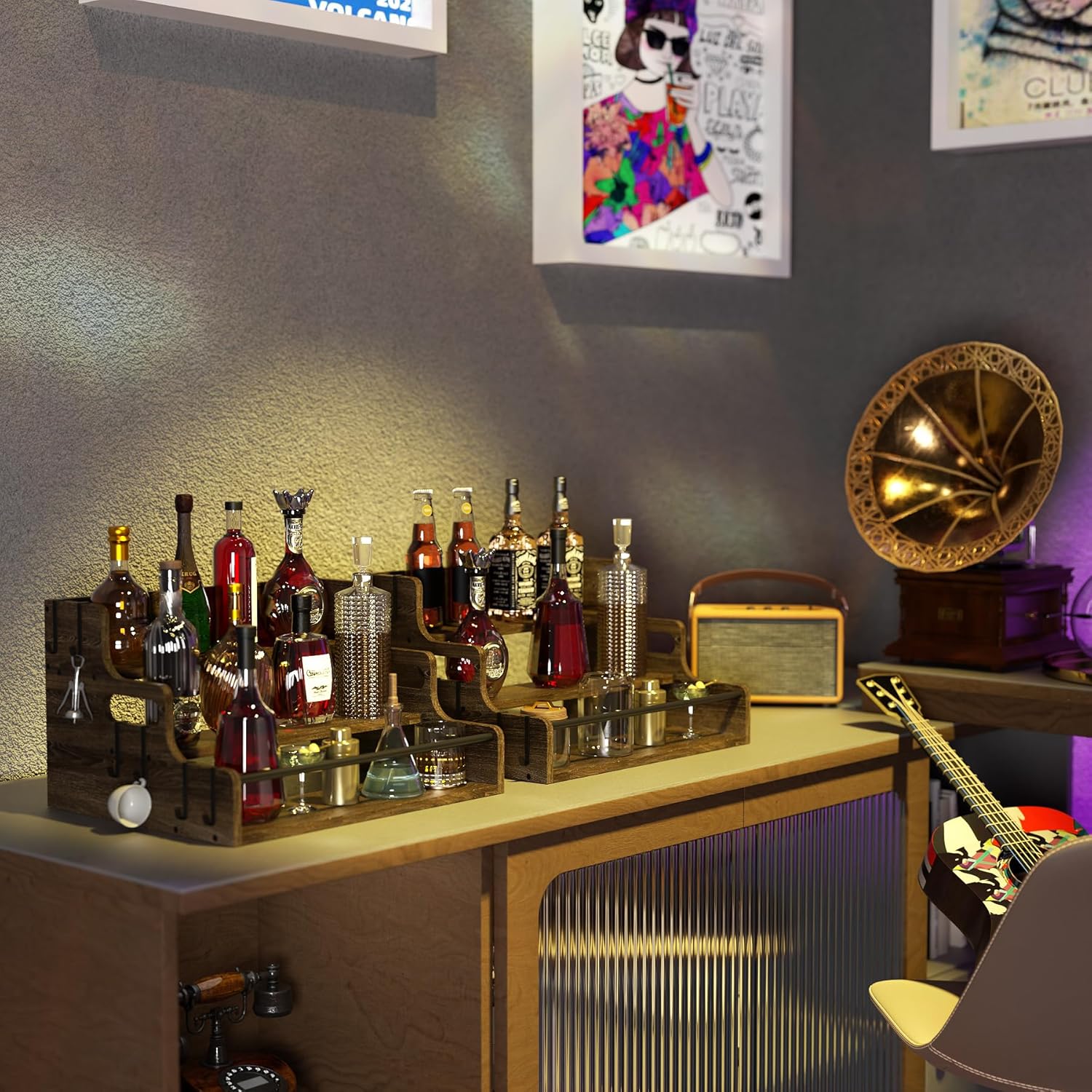 - Durable Wood Frame with Rustic Charm Crafted from premium wood, this liquor shelf brings vintage appeal and reliable support, Perfect for displaying spirits in a bar liquor shelf, whiskey bar, or alcohol cabinet for home