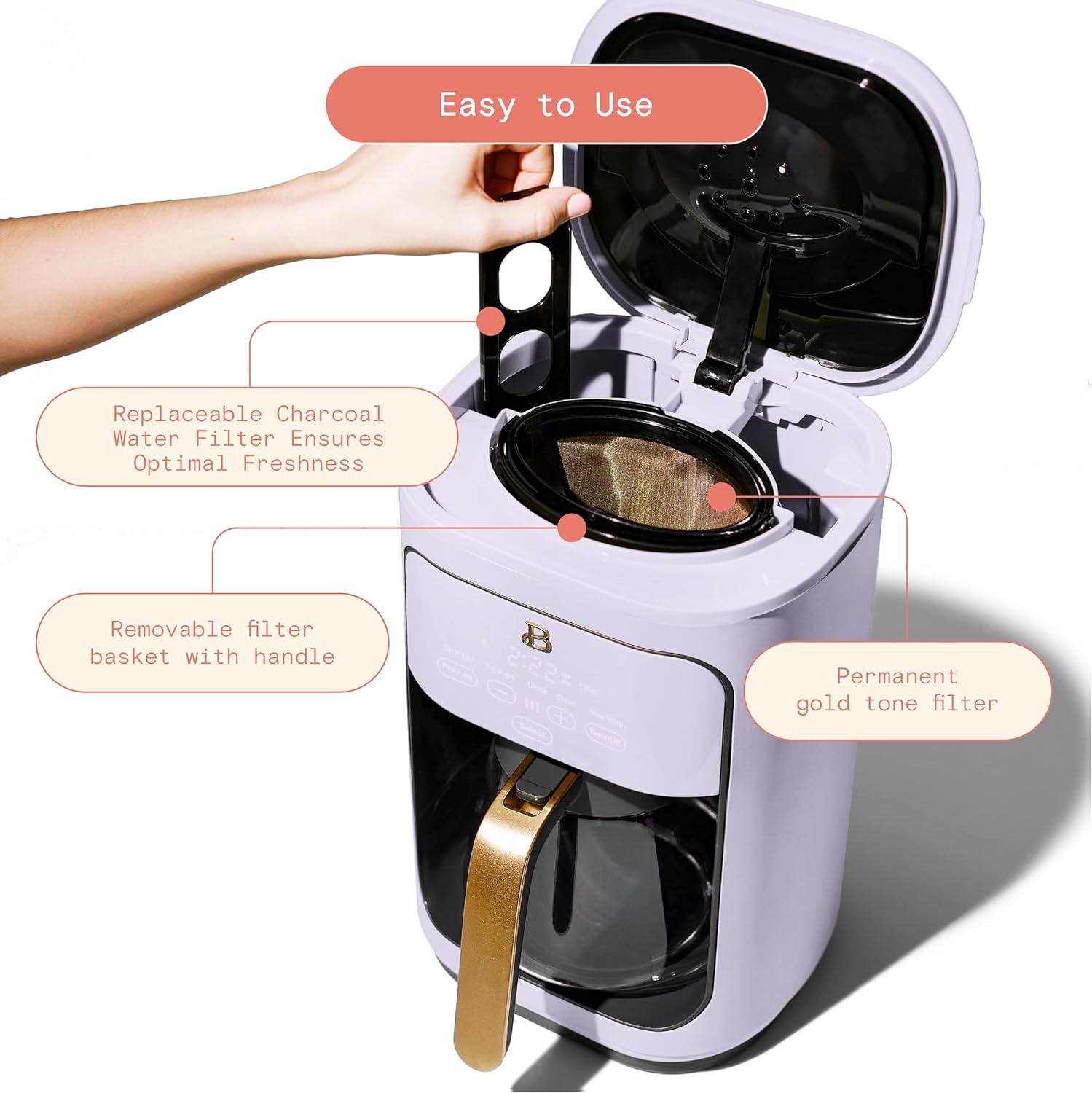 Beautiful Coffee Maker, 14-Cup, Touch-Activated Display, Programmable, Automatic Shut-Off, 1200W, Keep Warm, 24h Timer (Lavender)