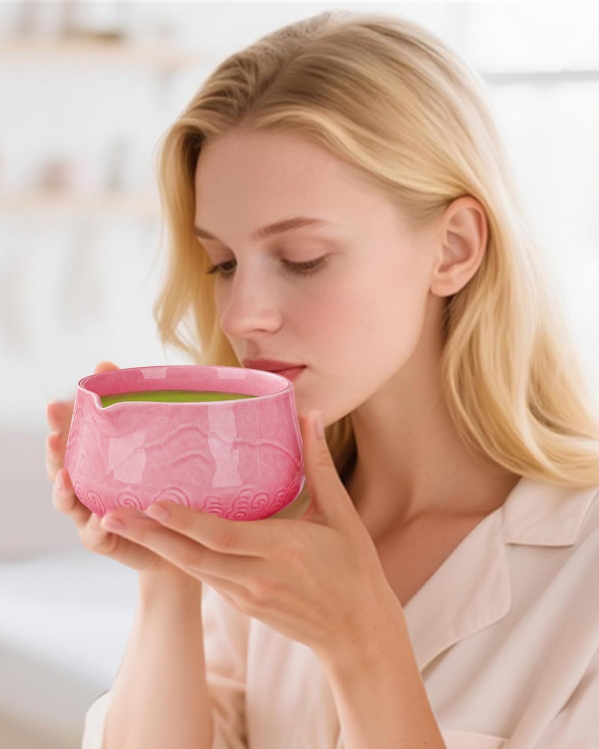 - High-Quality Ceramic Matcha Bowl - Made from durable, high-temperature fired porcelain, the matcha bowl and whisk holder are lead-free. Both The exterior and inner Sakura Pink Glaze is 100% hand-sprayed by artisans, natural and sleek that adds an aesthetic but also facilitates easy cleaning by preventing tea stains and residues from sticking.