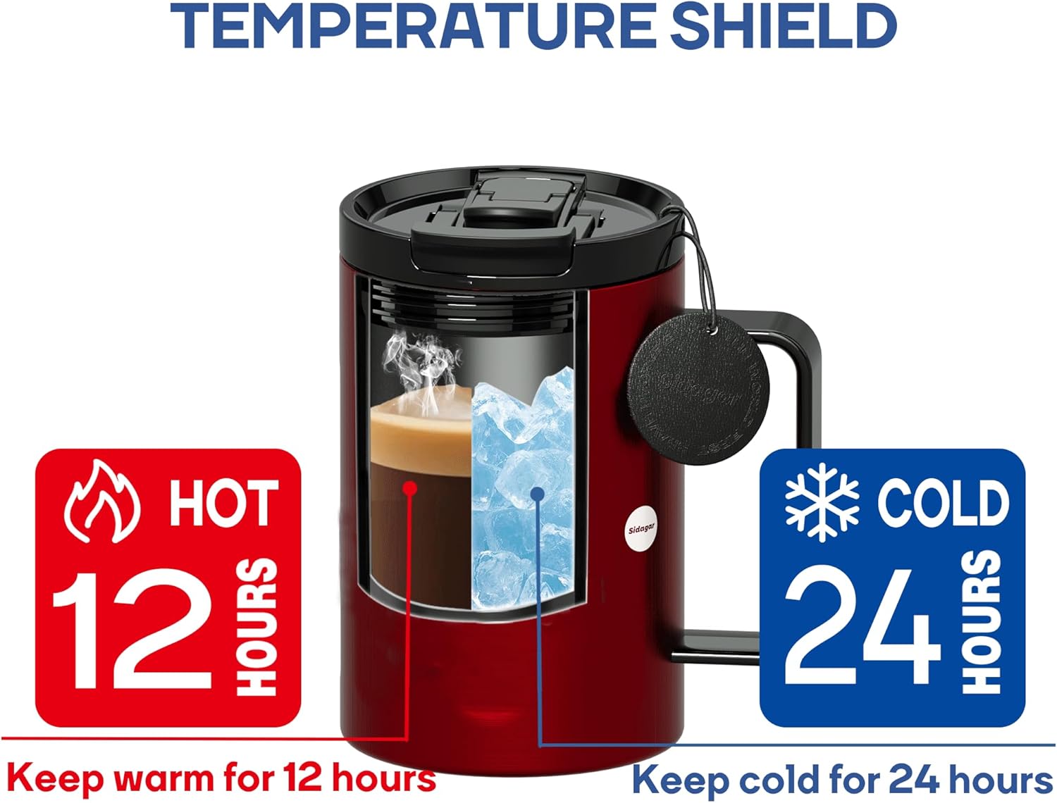 Sidagar+ 18 OZ z Stainless Steel Insulated Coffee Mug with Handle and Lid, Double Wall Vacuum Travel Mug, Tumbler Cup with Sliding Lid, Resuable Insulated Coffee Tumbler, Red