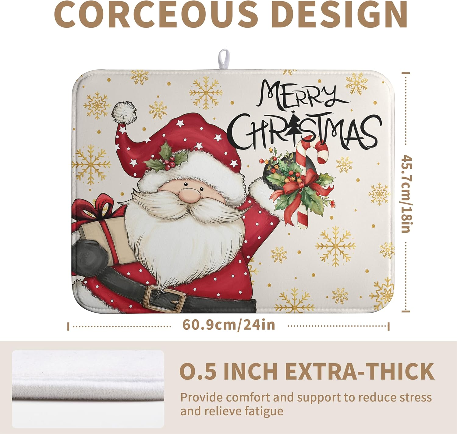 Christmas Santa Themed Dish Drying Mat Winter 18x24 Inch Large Size Drying Pad for Kitchen Counter Snowflake Dish Dry Mats Microfiber Absorbent Kitchen Decor Merry Christmas Coffee Bar Pad