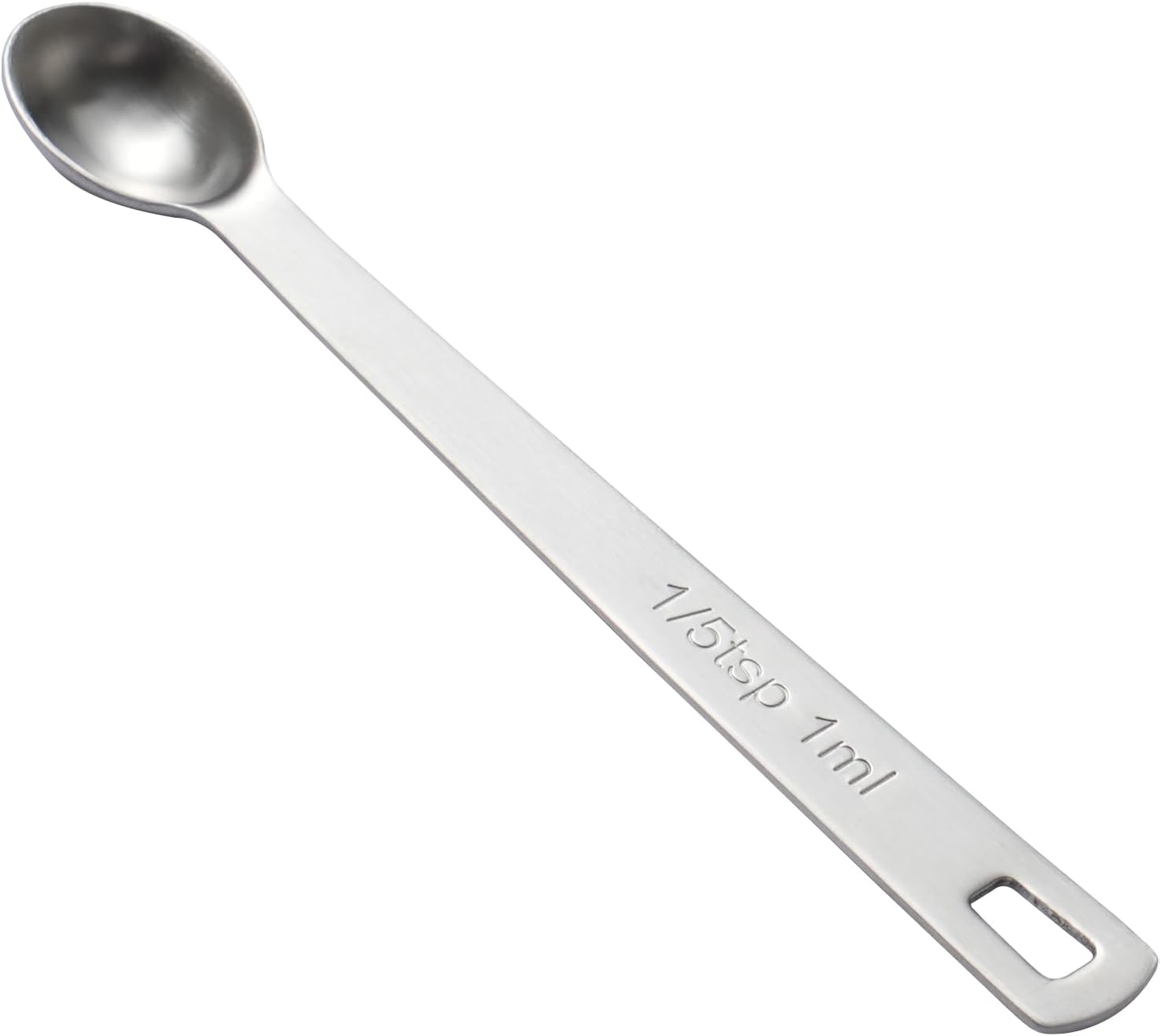 - Precise Scales: The measuring spoon is so precise that it can be the perfect partner for your cooking. The one eighth teaspoon has a clear scale on the handle. ⬤1/5 Teaspoon | 1 ml