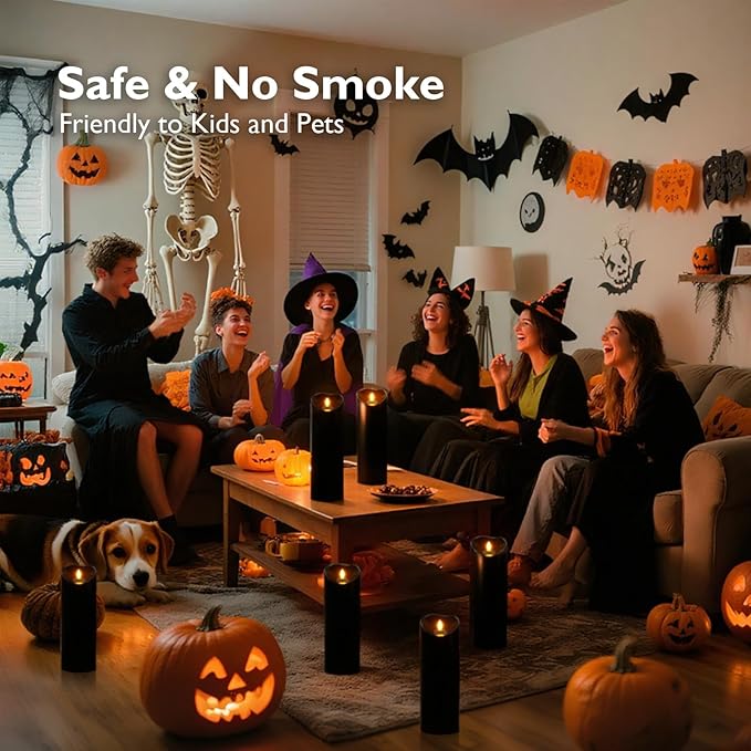 - Black Candles for Halloween: Homemory flickering flameless candles combine the 3D wick with waterproof feature, make the candles more realistic without worrying about melting or raining. They are great as halloween candles. Large candles designed to fit most lanterns. Add a spooky atmosphere to your Halloween!