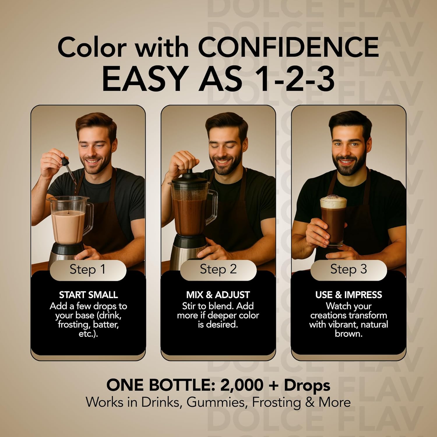 Dolce Flav Natural Brown Food Coloring – 2 oz Liquid Color from Class IV Caramel with Graduated Dropper | Water-Soluble | For Baking, Beverages & Sauces | Kosher | Made in USA
