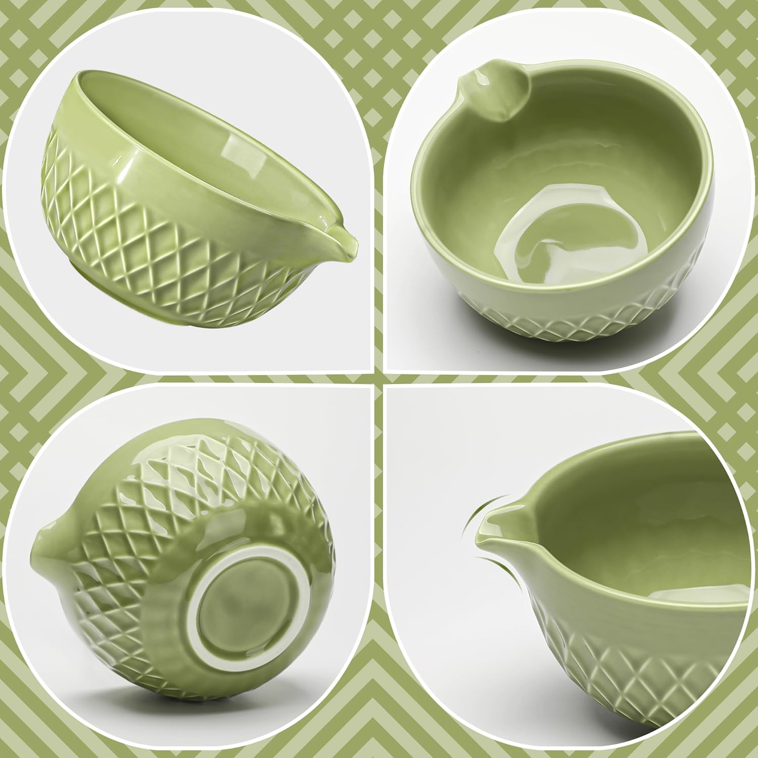 Matcha Whisk Set, 7 Pcs Matcha Kit, Ceramic Matcha Set Includes Matcha Bowl with Spout, Matcha Whisk and Holder, Bamboo Scoop, Scoop Rest, Sifter and Tea Towel (Matcha Green)