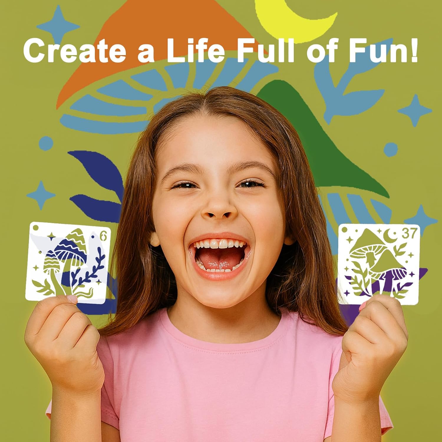 Felixcraft Mushroom Stencils for Painting, 64PCS 3x3 Inch Plastic Forest Stencils for Crafts Reusable, Durable PET Material for Wood Signs, Wall Art, Fabric Painting, and Magical DIY Art Projects